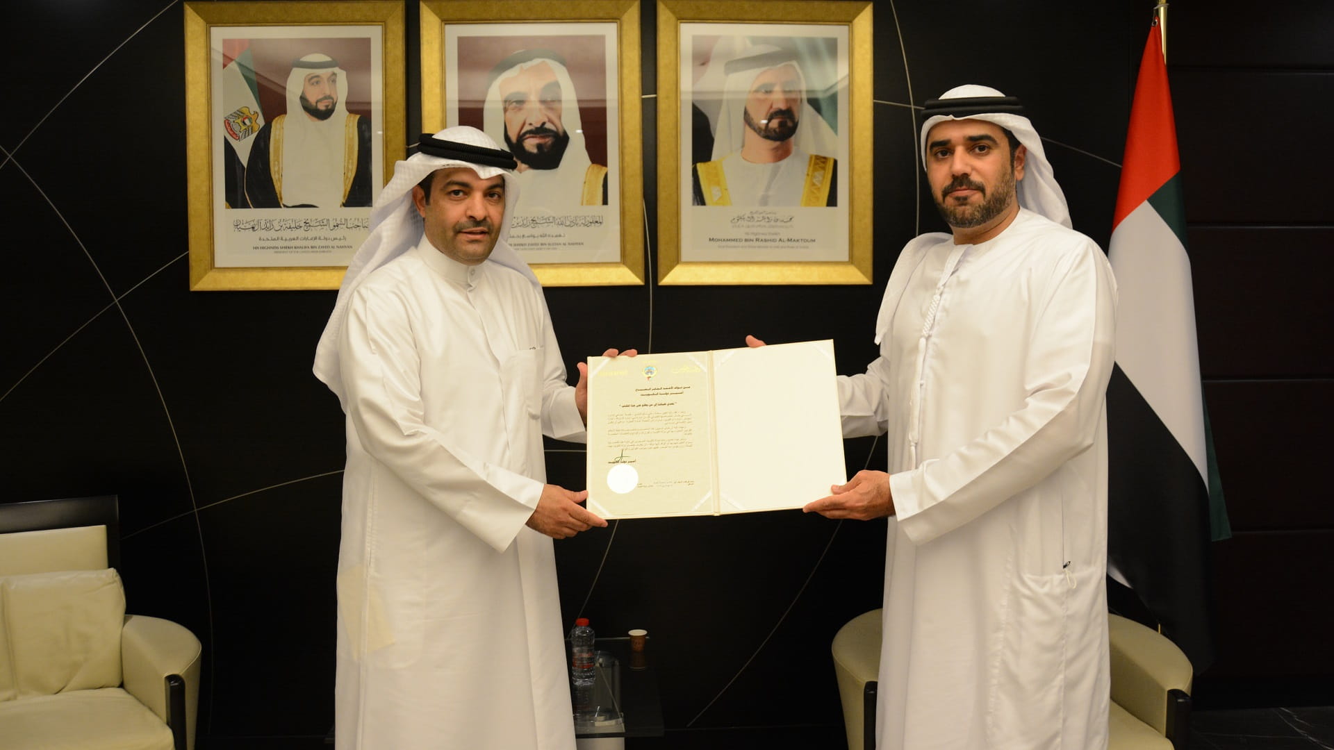 تسلم راشد عبد الله القصير نائب مدير مكتب وزارة الخارجية والتعاون الدولي في دبي البراءة القنصلية لسعادة علي سالم الزايدي، القنصل العام لدولة الكويت في دبي وذلك في مقرّ مكتب الوزارة في دبي.