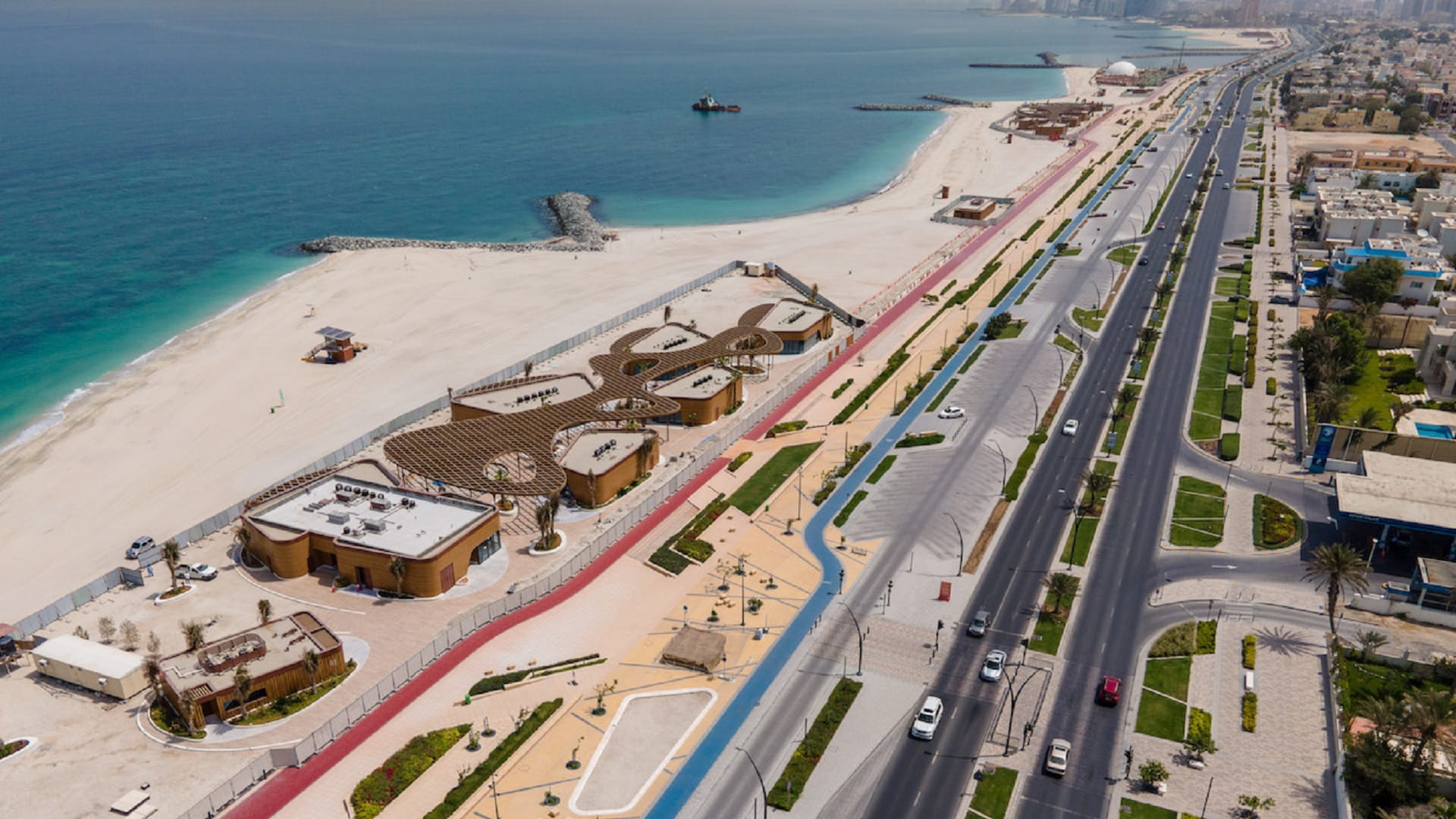 يتضمن الشاطئ الواقع قبالة منطقة الفشت، والذي يصل حدود إمارة عجمان، ويمتد بطول 3 كيلومترات، العديد من مرافق الجذب السياحي مثل المطاعم والمقاهي وعربات الطعام المتنقلة والعصائر وغيرها، كما يتضمن أماكن جلوس للعائلات، وممشى، ومساراً للدراجات الهوائية.