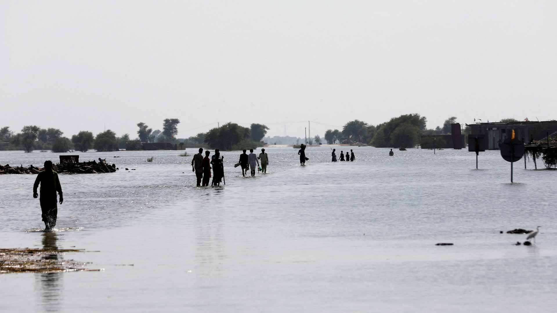 وقالت وزيرة تغير المناخ شيري رحمن لرويترز "ثلث البلاد مغمور بالمياه حرفياً"، واصفة حجم الكارثة بأنه "لم يسبق له مثيل".