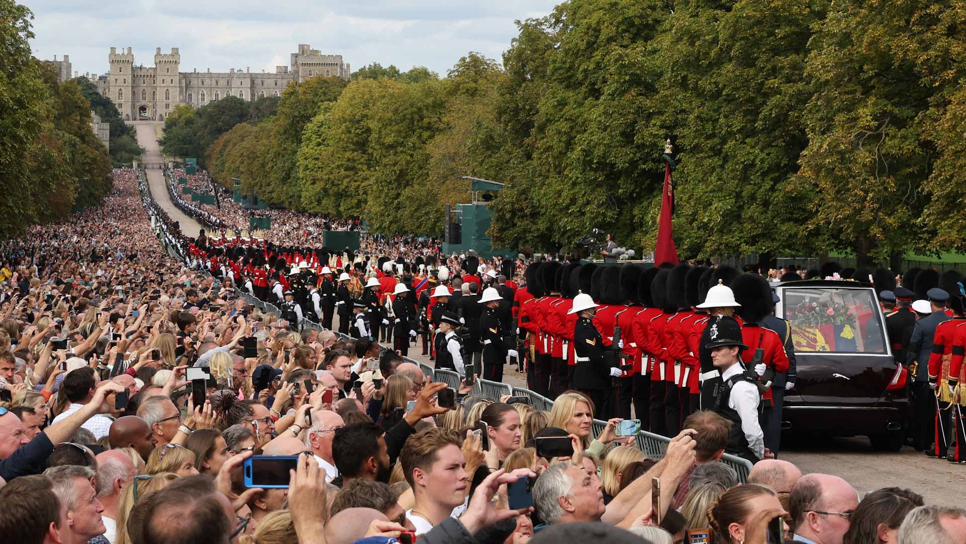 وظهر هاري وميجان يوم السبت بشكل غير متوقع مع شقيقه الأكبر وليام في جولة بالقرب من قلعة وندسور، في مظهر للوحدة يشير إلى أن وفاة جدتهما يمكن أن تؤدي إلى تقارب.