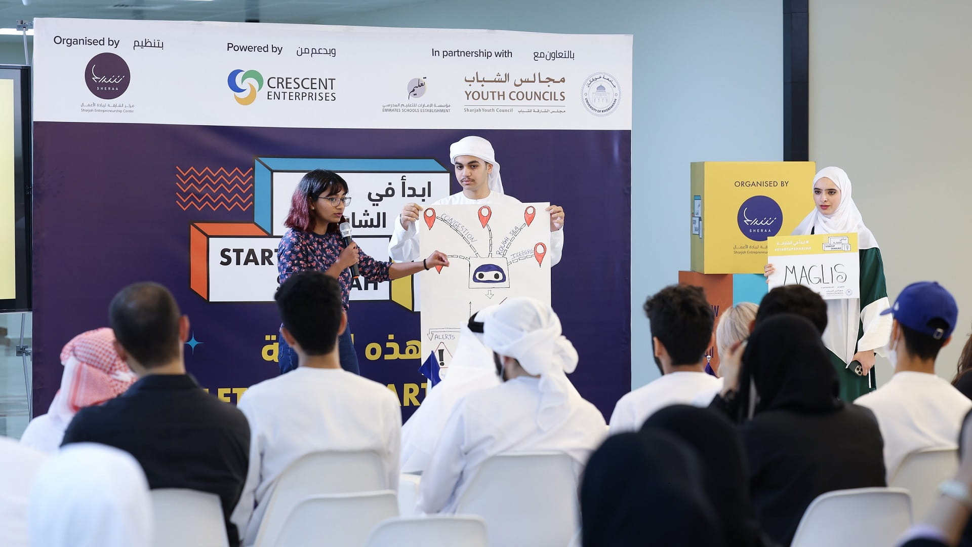 نظم مركز الشارقة لريادة الأعمال "شراع"، هاكاثون "ابدأ في الشارقة"، بالشراكة مع الهلال للمشاريع، وبالتعاون مع جامعة خورفكان، و"الإمارات للتعليم المدرسي"، ومجلس الشّارقة للشّباب، خلال الفترة 16 - 18 سبتمبر الجاري، بمشاركة أكثر من 150 شكلوا 14 فريقاً.