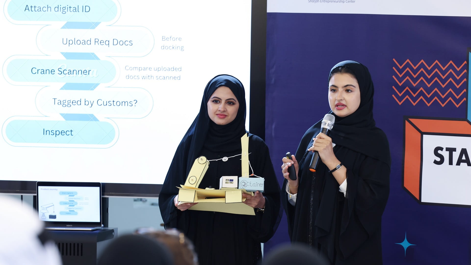 وشهد الهاكاثون، فوز مشروع "أوكتينير" بالمركز الأول، وهو نظام مسح ضوئي متقدم يُسهّل تحويل مستندات الموانئ الورقية إلى رقمية، ويعمل على تحسين أنشطة الميناء اللوجستية من خلال استخدام تقنية اتصال المجال القريب NFC، حيث تحمل كل حاوية علامة رقمية تحتوي جميع بياناتها وتعريفاً بمحتوياتها، ويتم قراءتها بواسطة الماسح الضوئي المرفق بالرافعة في الميناء، إذ يتيح التحقق الأوتوماتيكي تسريع وتسهيل عملية التخليص الجمركي.