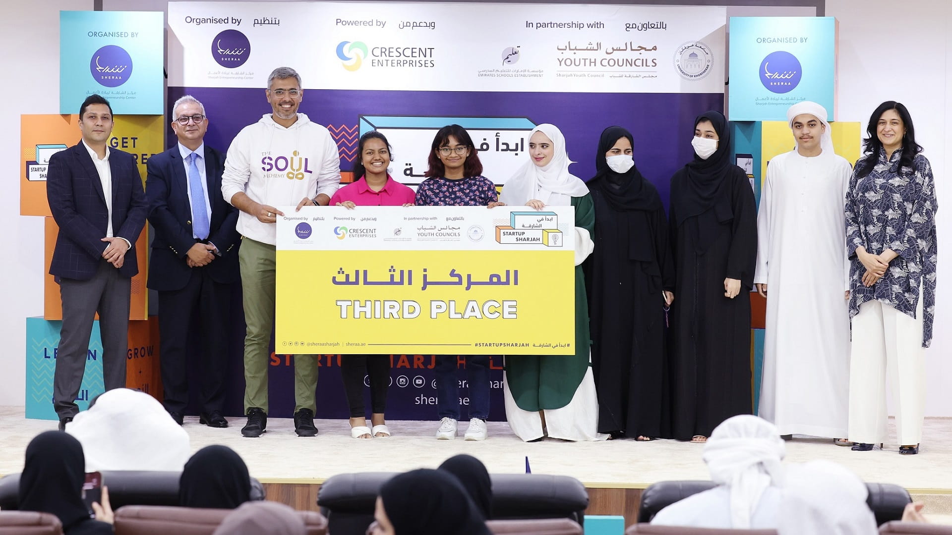 كرّم مركز الشارقة لريادة الأعمال "شراع"، الفرق الثلاثة الفائزة بهاكاثون "ابدأ في الشارقة"، الذي نُظِم بالشراكة مع الهلال للمشاريع، وبالتعاون مع جامعة خورفكان، و"الإمارات للتعليم المدرسي"، ومجلس الشّارقة للشّباب، خلال الفترة 16 - 18 سبتمبر الجاري، بمشاركة أكثر من 150 شكلوا 14 فريقاً، وتم اختيار أفضل 3 أفكار منهم للفوز بجوائز قيمة وفرصة لتحويل أفكارهم إلى مشاريع.
