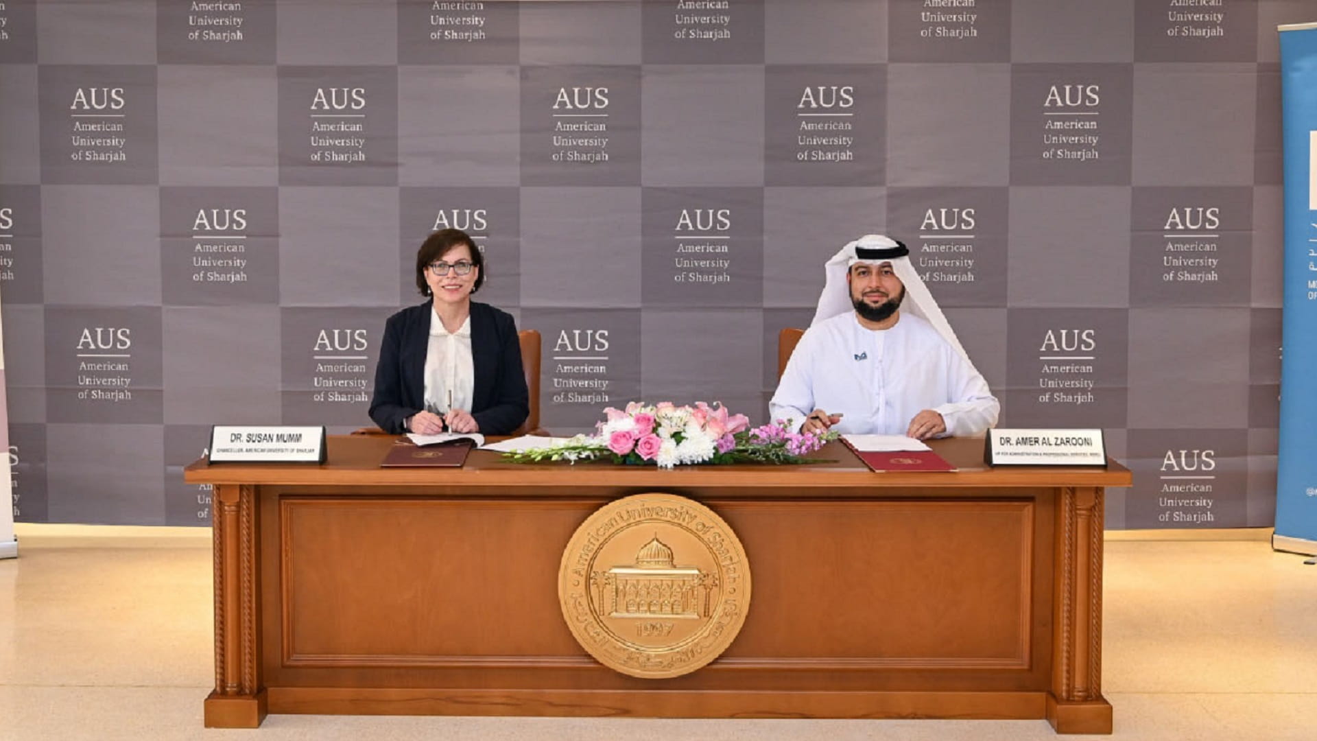 وقع المذكرة، كل من الدكتورة سوزان مام مديرة الجامعة الأميركية في الشارقة، والدكتور عامر محمد الزرعوني نائب مدير جامعة محمد بن راشد للطب والعلوم الصحية للشؤون الإدارية والخدمات المهنية، بحضور كبار ممثلي الجانبين.