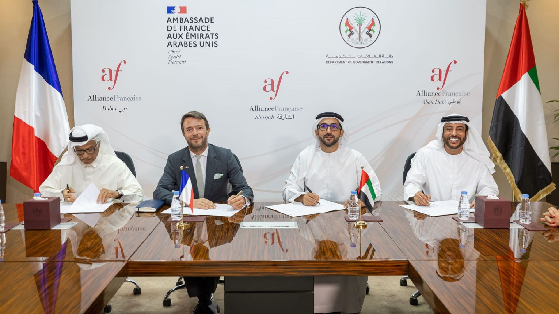 وحضر التوقيع كل من ناتالي كينيدي القنصل العام لجمهورية فرنسا، والشيخ ماجد بن عبد الله القاسمي مدير الدائرة، وماري لوري شارييه نائب القنصل العام، وحسين الجزيري رئيس "شبكة الرابطة الفرنسية" في دبي، وسلطان الحجي رئيس "شبكة الرابطة الفرنسية" في أبوظبي.