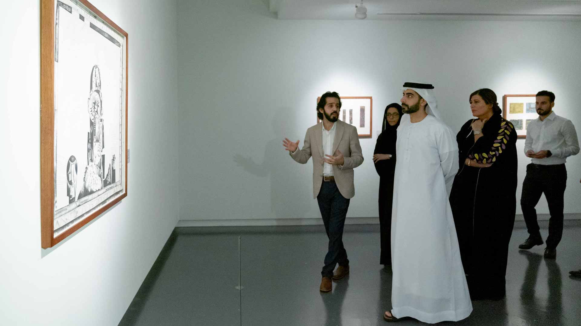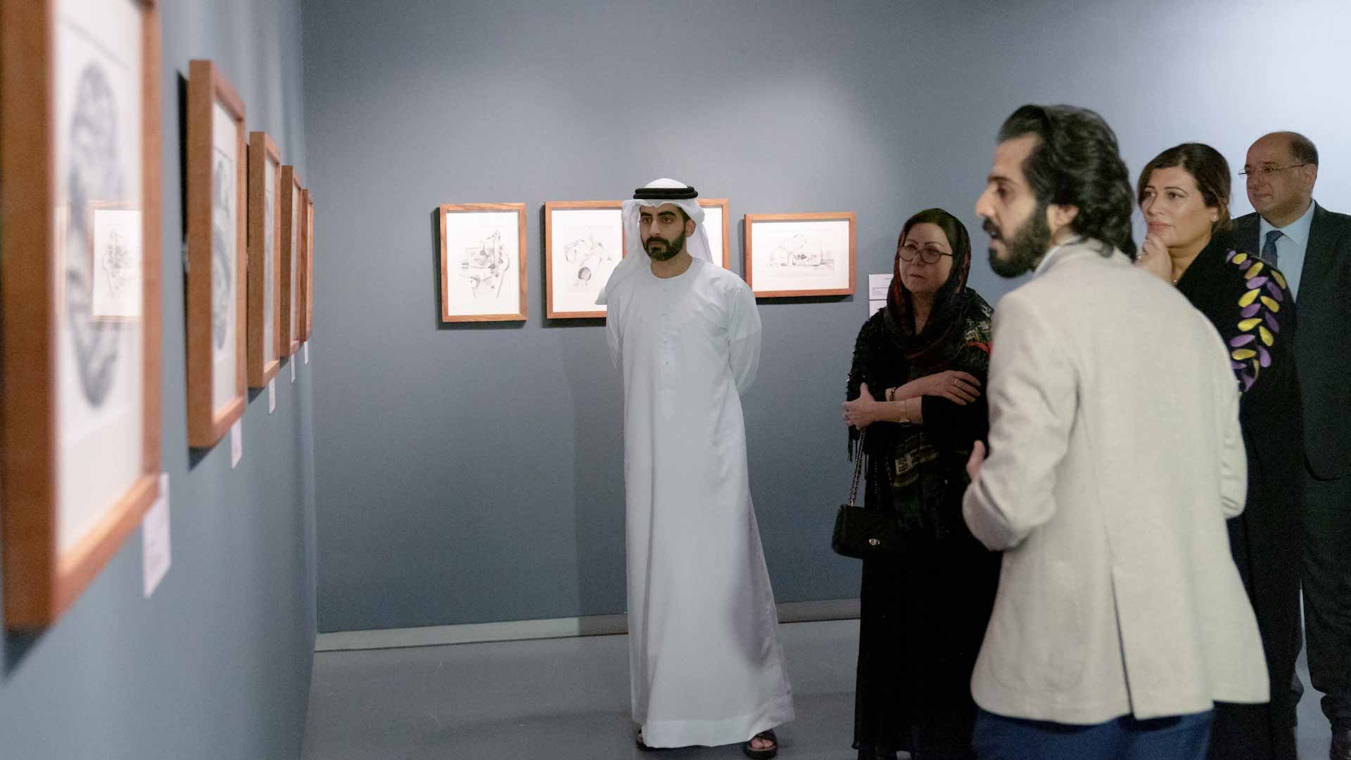وتجول رئيس مكتب سمو الحاكم في أرجاء المعرض الذي يضم أكثر من 130 عمل فني متنوع، متعرفاً على ما يضمه من تجارب مختلفة للفنان خياط وثّقت لمسيرته الفنية الحافلة عبر ما يقارب من ستة عقود.