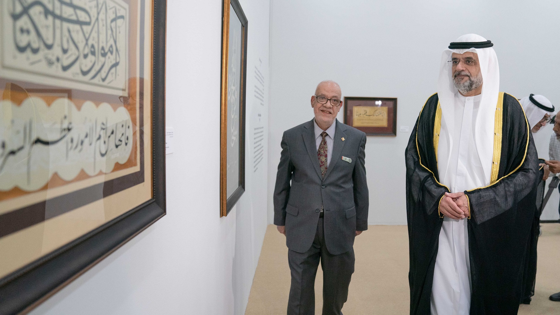 بعدها عرج سمو ولي العهد نائب حاكم الشارقة، إلى معرضي الفنان حمدي زايد من جمهورية مصر العربية، والخطاط العراقي الراحل صادق الدوري، ضمن الفنانين الثلاثة المكرمين في هذه الدورة.