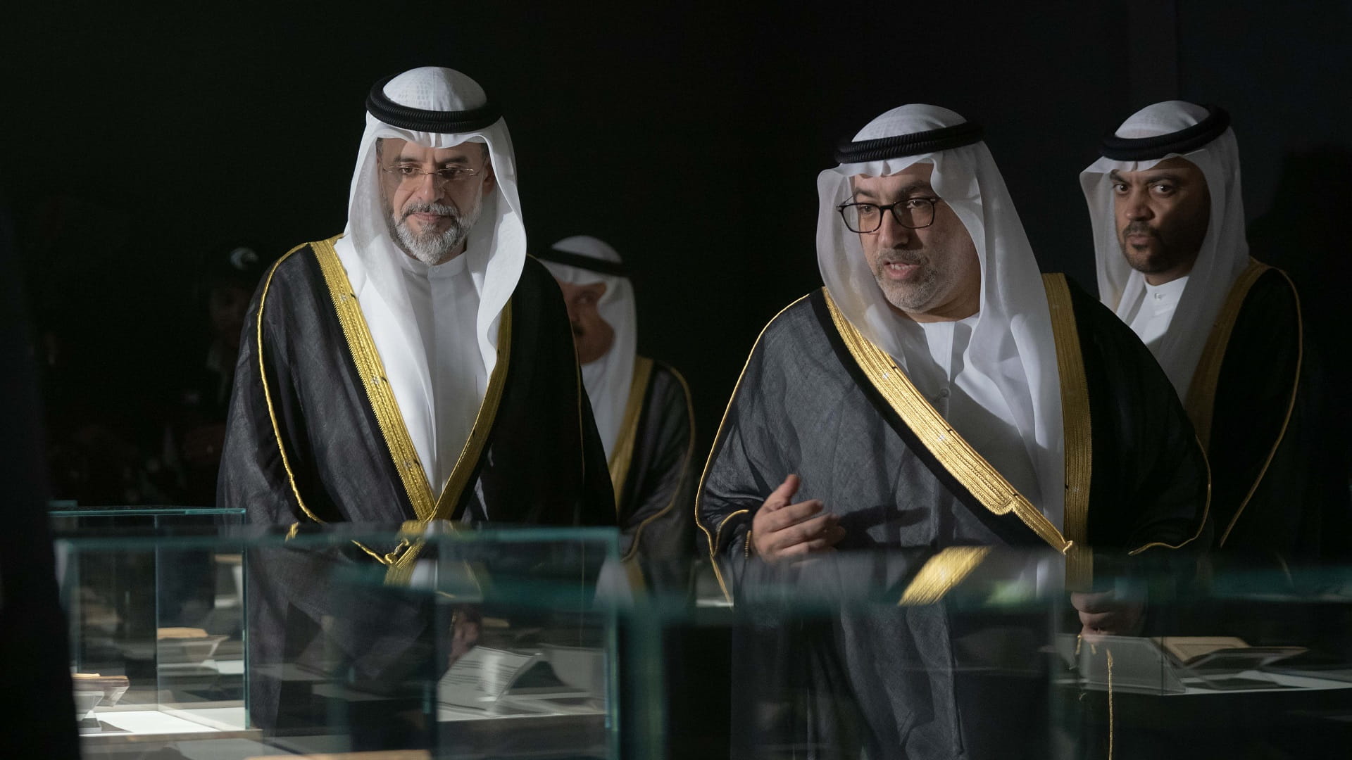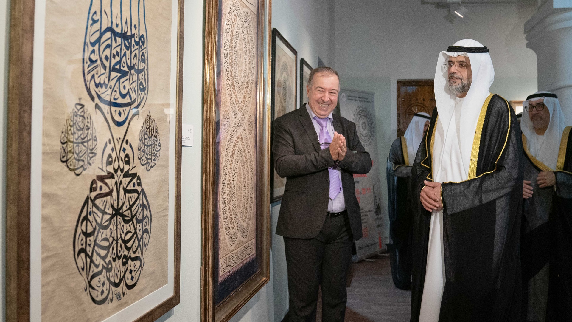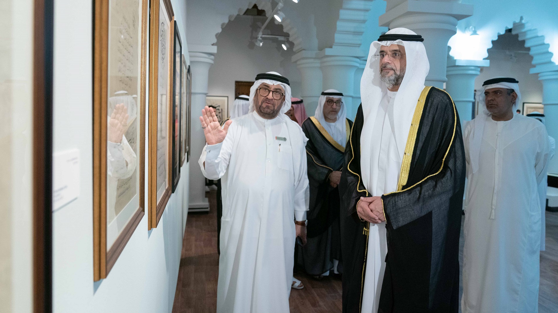 واستمع سموه، إلى شرح وافٍ حول المخطوطات القيّمة التي يضمها المعرض، والتي تعود إلى ثمانينيات القرن الماضي ومعانيها ودلالاتها ومضامينها والتي أنجزها فنانون مبدعون من مختلف دول العالم.