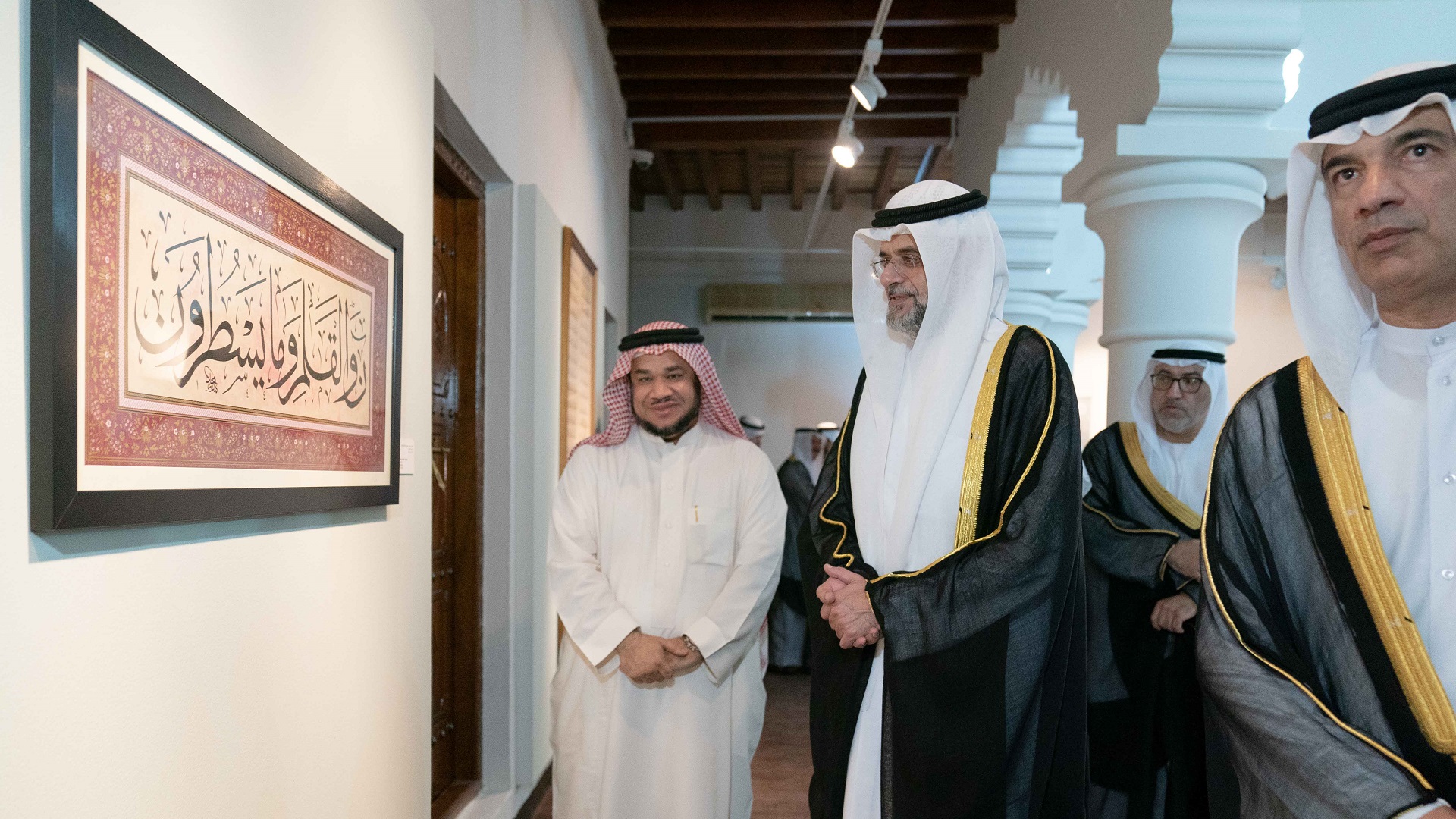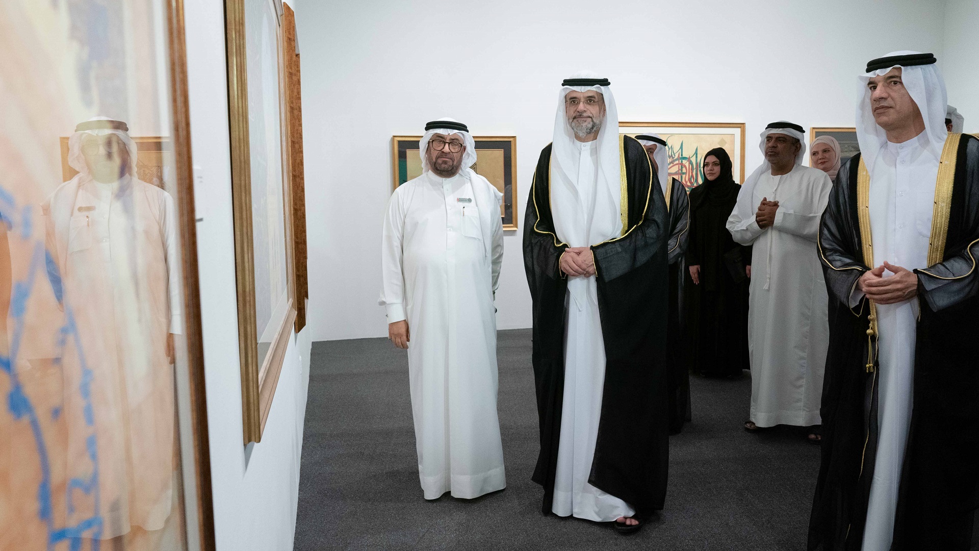 وفور وصول سموه، تفضل بزيارة المعرض العام، حيث استمع سموه إلى شرحٍ مفصّل عما يضمه المعرض من لوحاتٍ متنوعة توزعت ما بين الآيات القرآنية والقصائد بمختلف أنواع الخطوط، أنجزها عدد من الفنانين من دولة الإمارات العربية المتحدة، وغيرها من الدول العربية والإسلامية.