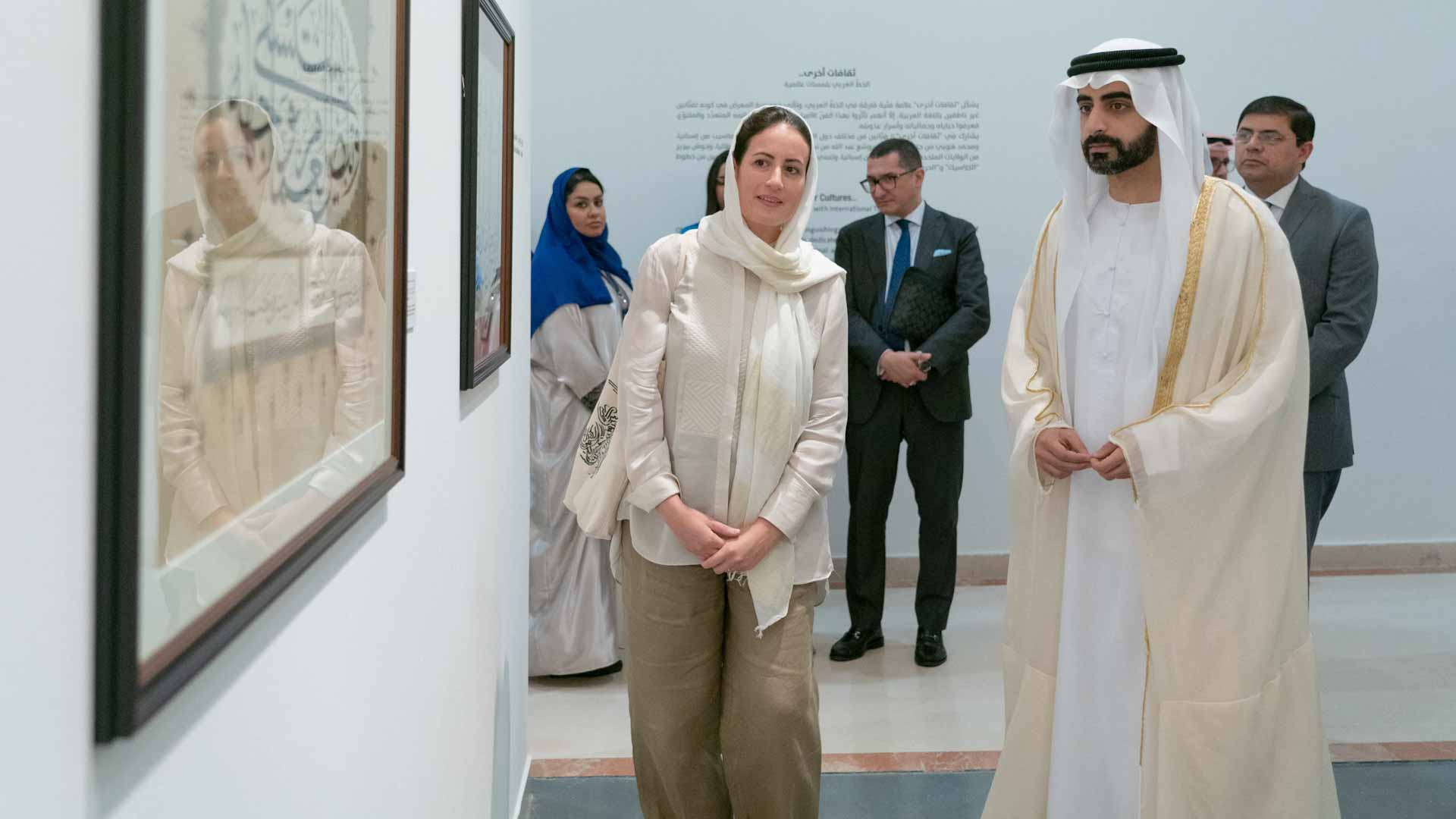 وتجول رئيس مكتب سمو الحاكم في مجموعة المعارض الثلاثة، وهي: المعارض المعاصرة، ومعرض فن الزخرفة الإسلامية "ترنيمة الذهب"، ومعرض ثقافات أخرى، مستمعاً إلى شروحات مفصلة عن الأعمال التي تقدمها المعارض والتي عكست تطور تجربة العمل على الخط العربي من مجموعة كبيرة من الخطاطين والفنانين، والمستنبطة من شعار الملتقى في هذه الدورة "ارتقاء".