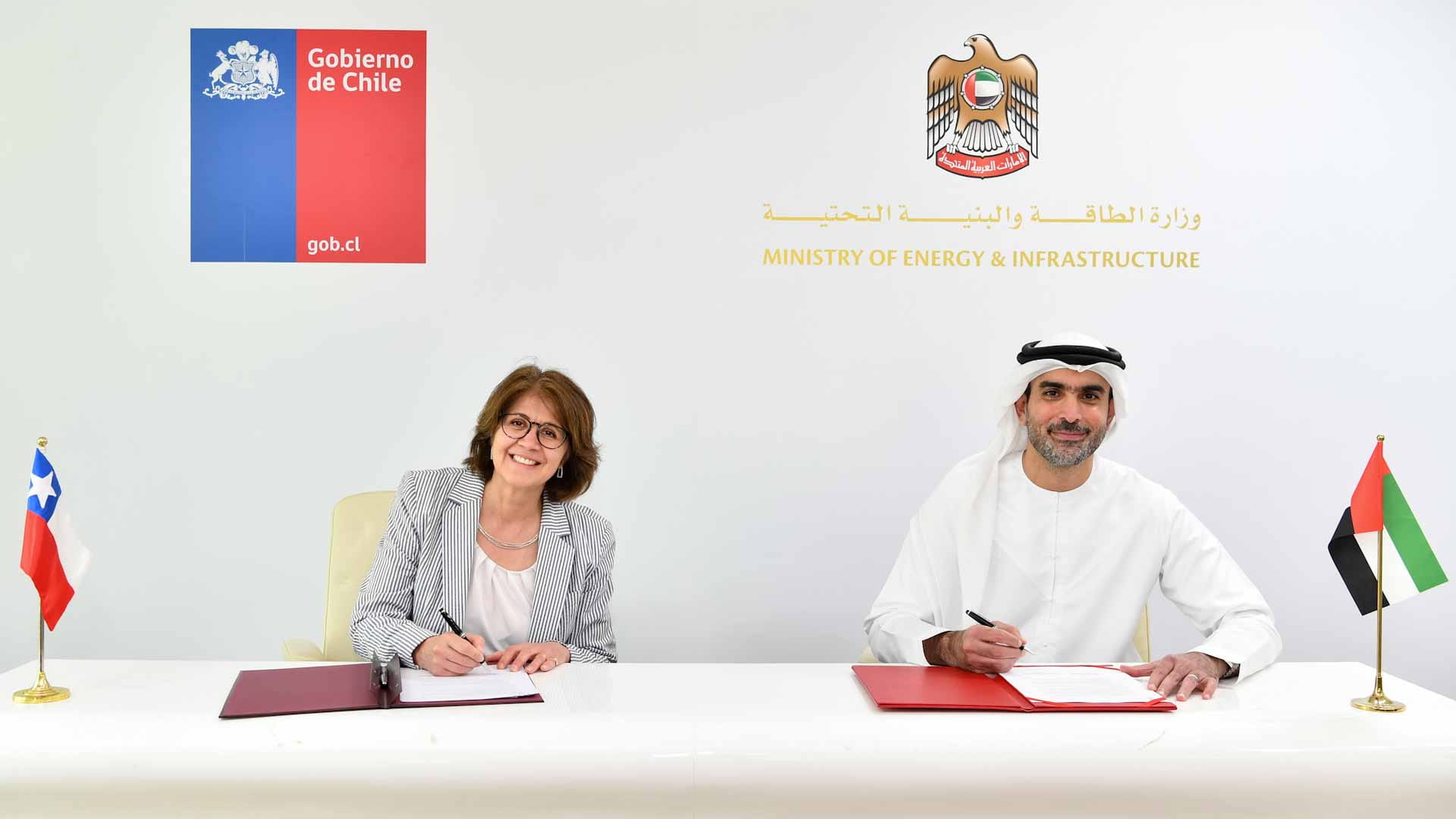 وفقاً لمذكرة التفاهم التي وقعها في مبنى ديوان وزارة الطاقة والبنية التحتية بدبي، كلٌ من سعادة المهندس شريف العلماء، وكيل وزارة الطاقة والبنية التحتية لشؤون الطاقة والبترول، وسعادة خيمينا فوينتس نائب وزير الخارجية في جمهورية تشيلي، بحضور عدد من المسؤولين من الجانبين، يتعاون الطرفان في تبادل المعلومات والمعرفة والخبرات وعقد اجتماعات رفيعة المستوى للتباحث والتفاكر في القضايا ذات المنفعة المتبادلة، والتشارك في إعداد الأطروحات الأكاديمية، وتعزيز التعاون ذي العلاقة بالطاقة النظيفة والمتجددة، وتنظيم ورش العمل للفعاليات المتعلقة بالمجال، وإطلاق المبادرات الداعمة للشراكة بين القطاعين الحكومي والخاص في دولتي الإمارات وتشيلي.