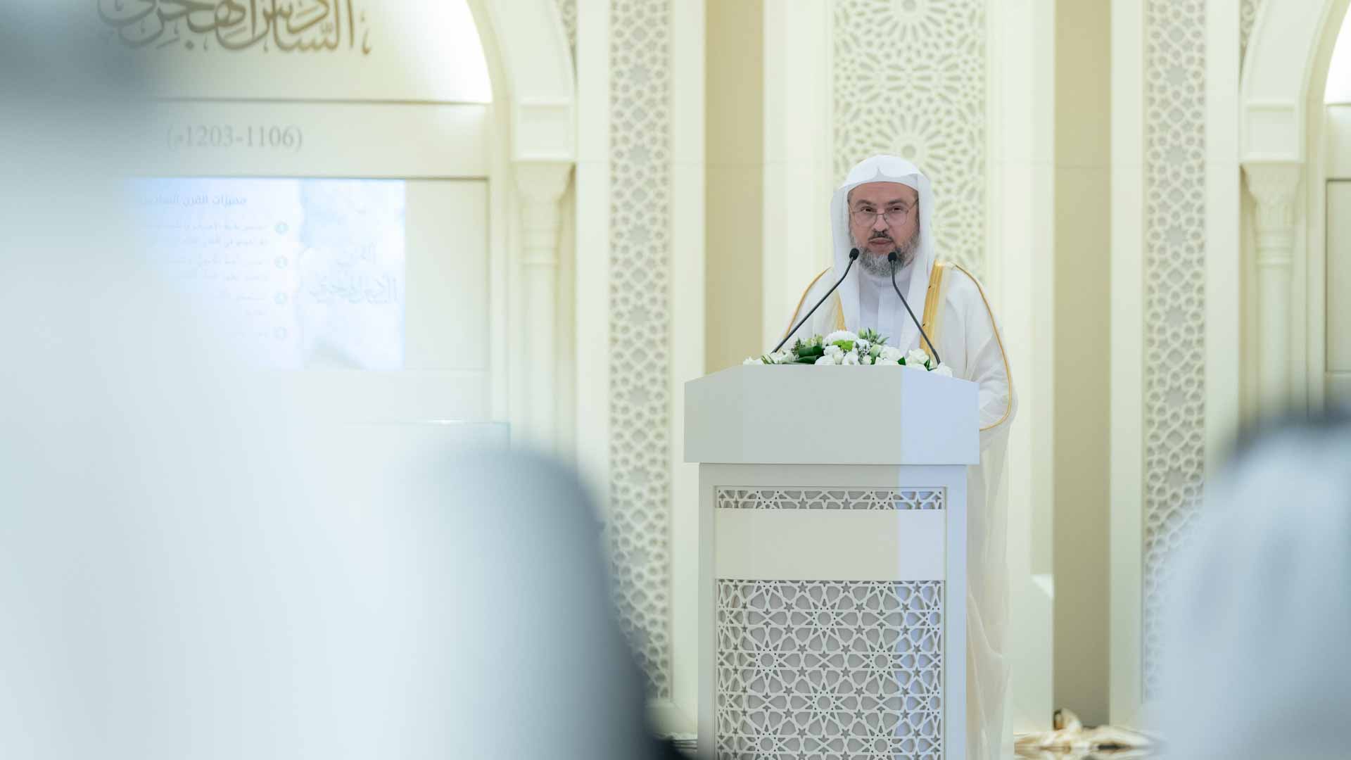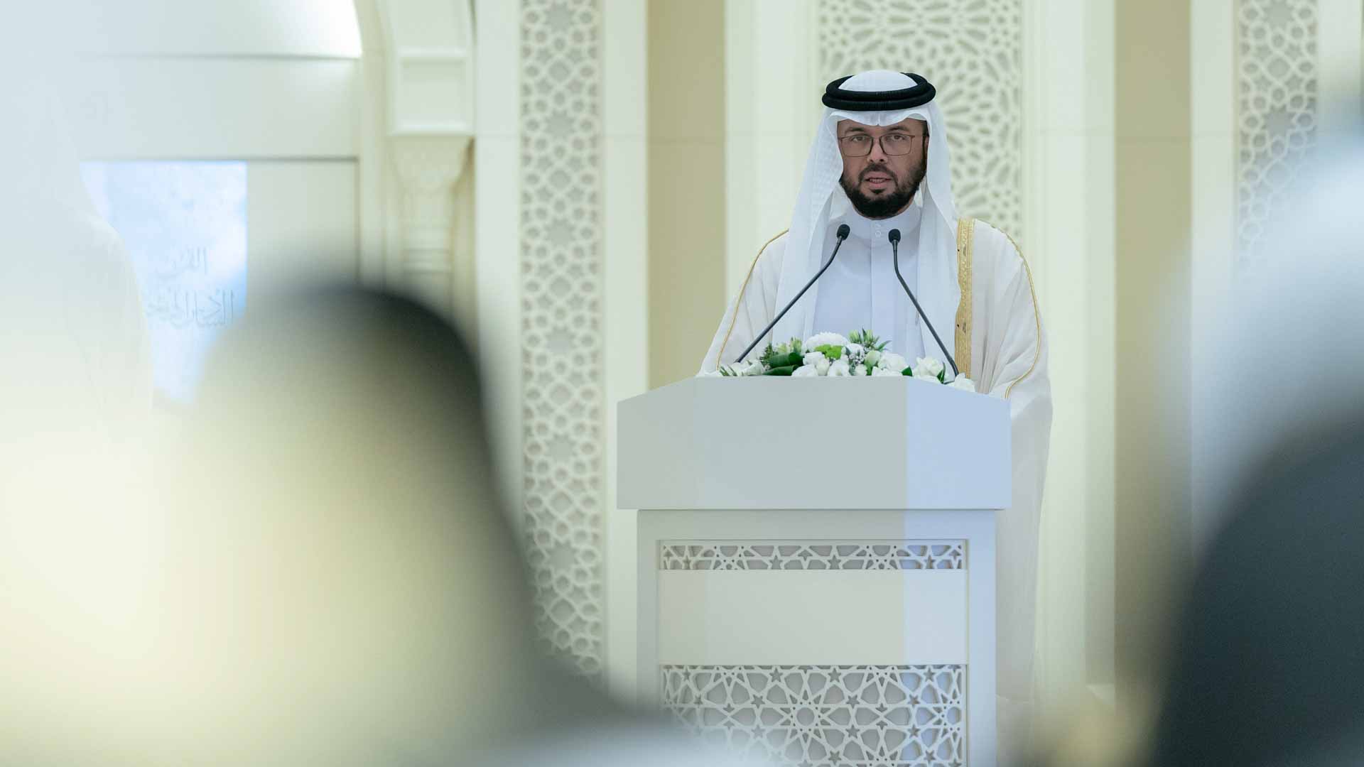 وأشار رئيس مجمع القرآن الكريم بالشارقة إلى ما يمثّله المجمع كمؤسسة تعليمية متخصصة، وما يسعى إلى تقديمه قائلاً: "إنّه درة معرفِيّة وأيقونة حضارية، جمعت بين جمال المظهر وجلال الجوهر، وأصبحت مَضْرِبَ المثل في التميز والإبداع، يسير بِخُطًى ثابتة وبصيرة ثاقبة، يسعى للابتكار والتجديد بعيداً عن التَّكْرار والتقليد، له بصمته الخاصة ورؤيته الفريدة، يربط الحاضر السعيد بالماضي التليد، ويُظْهِر عظمة القرآن المجيد، وتراثَ الأُمّة العتيد".