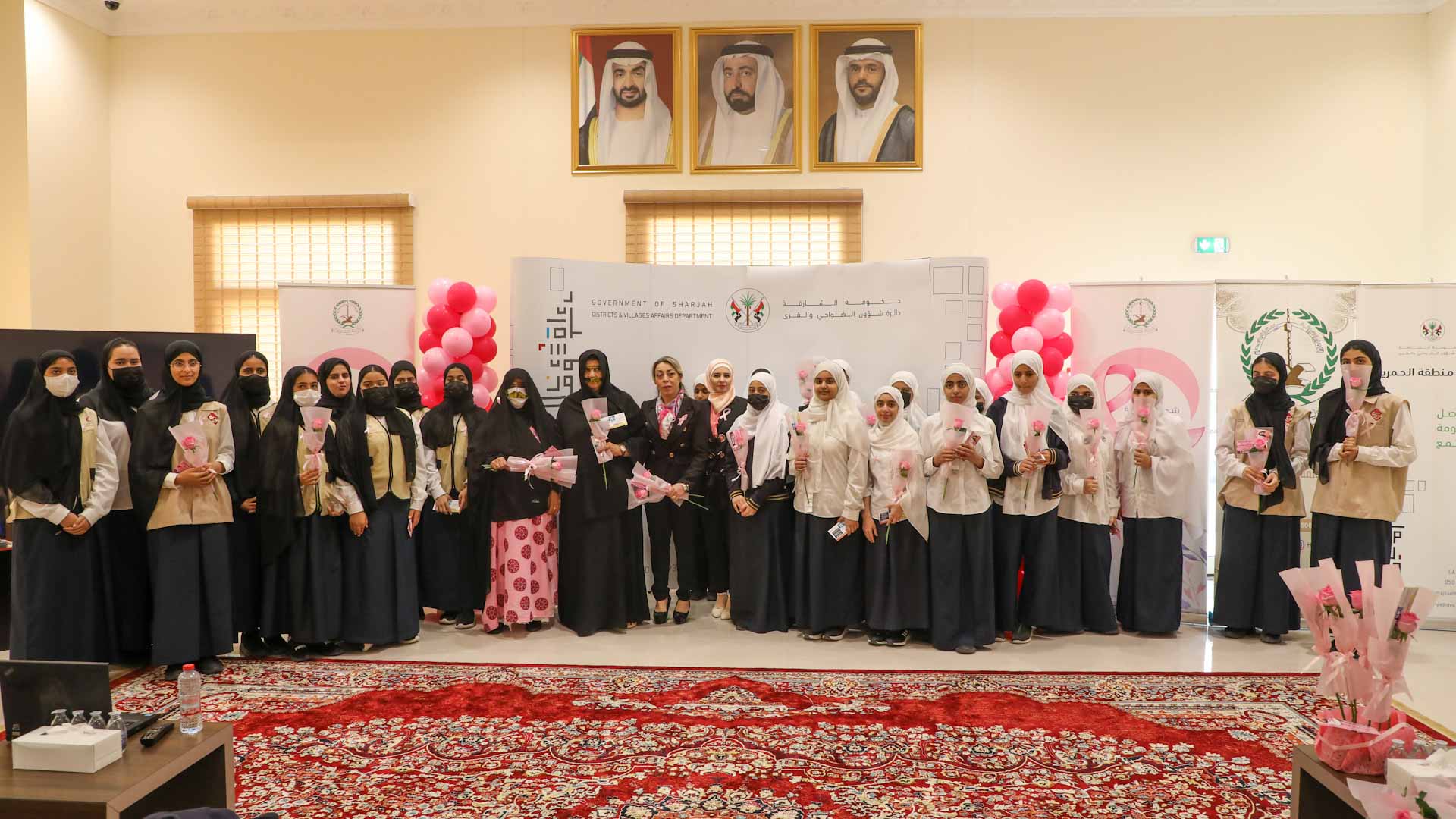 وشاركت في المحاضرات التوعوية المقامة بمناسبة "أكتوبر الوردي"، موظفات بلدية الحمرية والموظفات في دائرة الخدمات الاجتماعية فرع الحمرية ومنتسبات الدائرة والمعلمات من مدرسة القلعة بالحمرية وعدد من الطالبات في المدرسة.