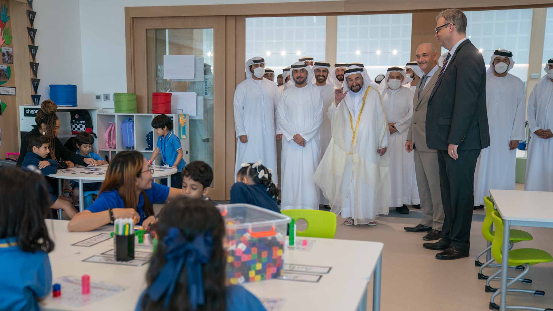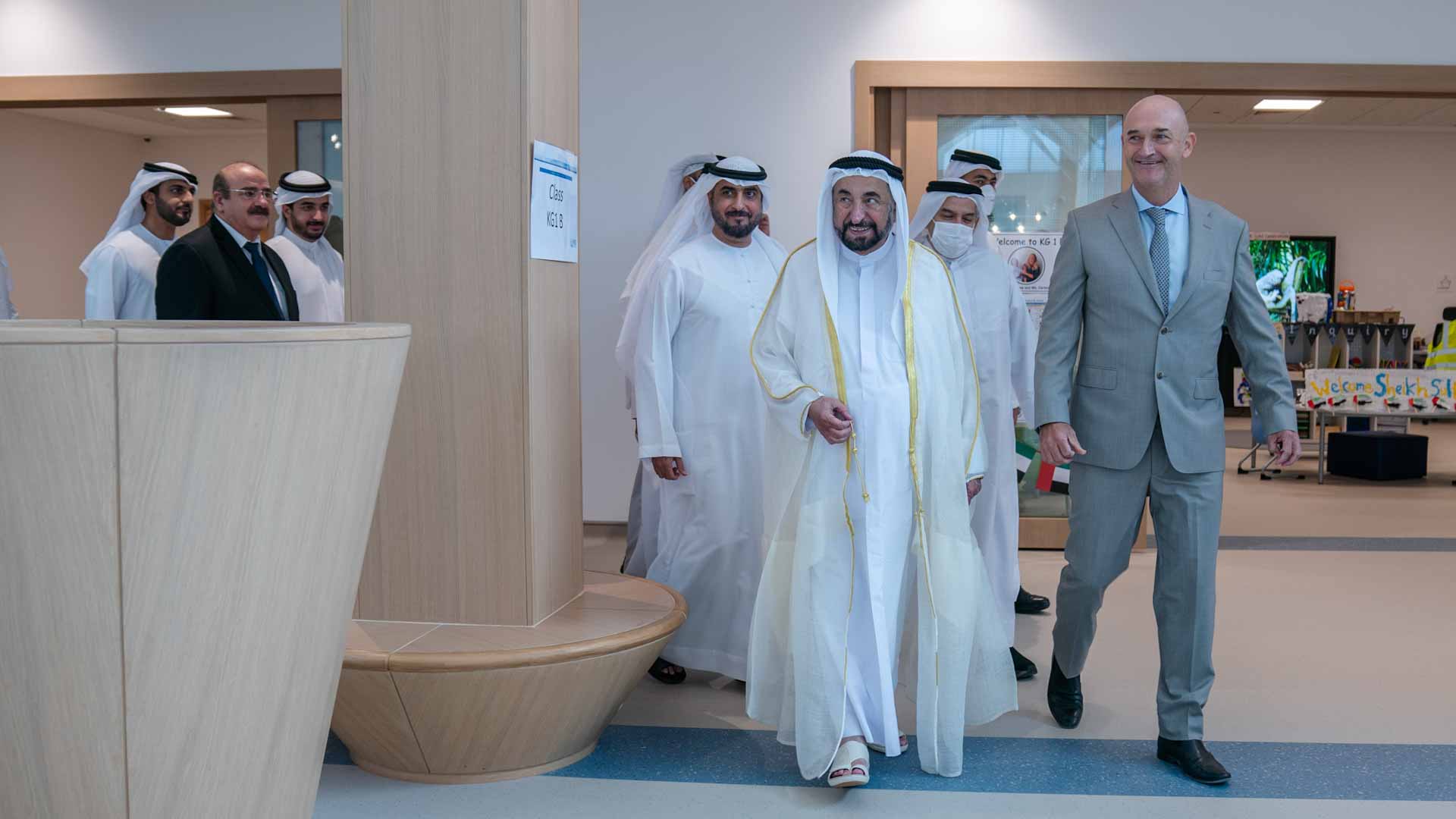 وتجوّل سموه، في مبنى المدرسة مطلعاً سموه على ما يضمه المبنى من أقسام تضم الروضة والصف الأول، والصفوف الأولى للتعليم الأساسي إلى جانب الساحات التعليمية المختلفة والمسرح وغيرها من المرافق الخاصة بعملية التعلم والتعليم والمباني الإدارية الملحقة.
