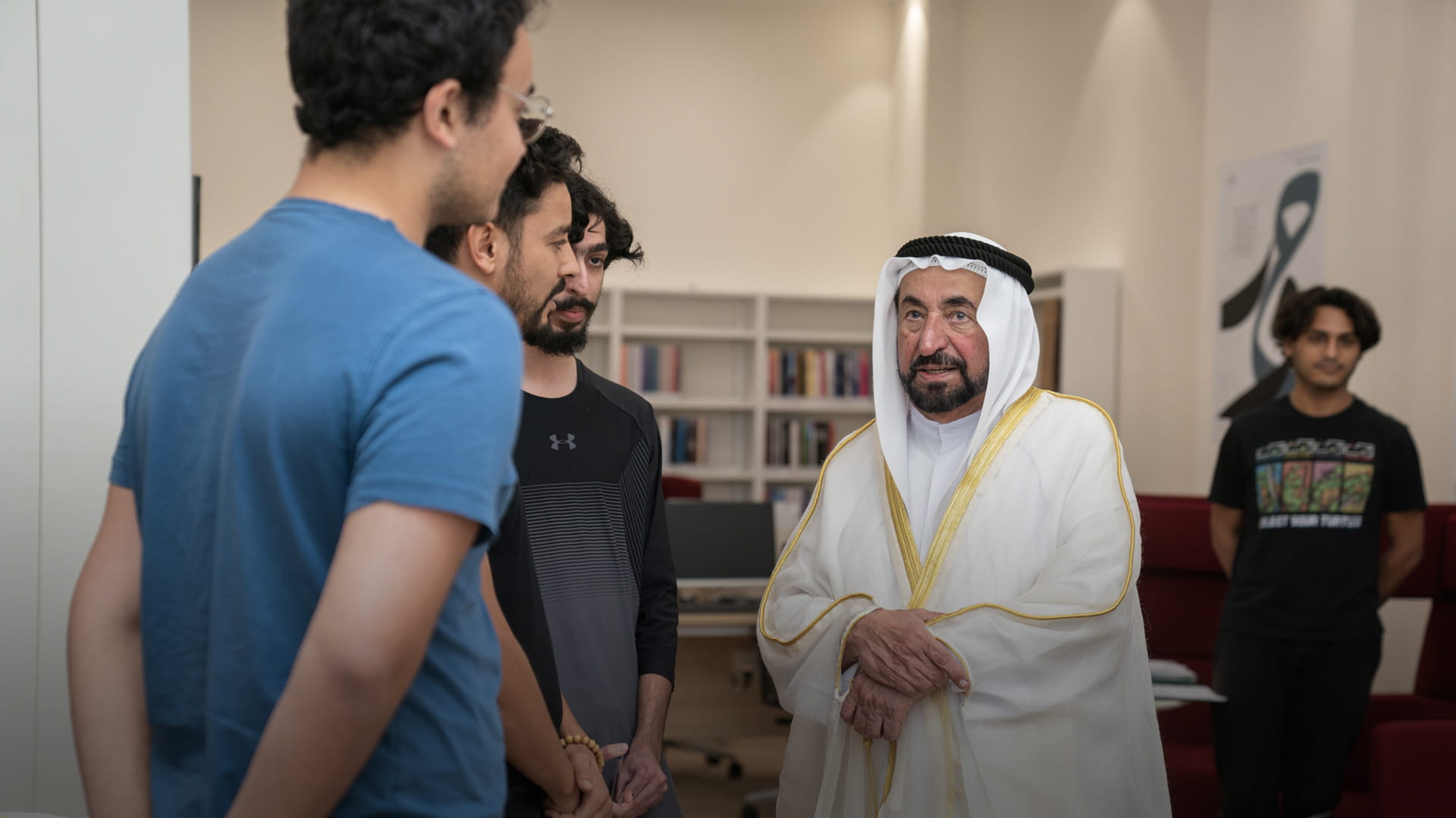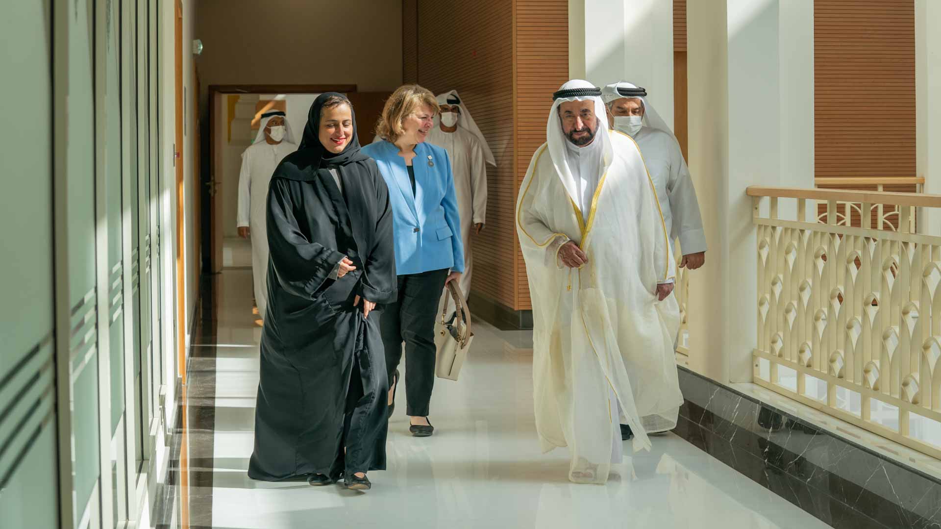 وحضر الاجتماع والجولة إلى جانب سموه كل من: الشيخة حور بنت سلطان القاسمي رئيسة مؤسسة الشارقة للفنون نائب رئيس مجلس الأمناء، وإسماعيل عبد الله إسماعيل أمين عام الهيئة العربية للمسرح، وأحمد محمد بو رحيمة مدير إدارة المسرح بدائرة الثقافة، والدكتور حبيب غلوم العطار المستشار الثقافي بوزارة الثقافة، والدكتور يوسف عبد الله عيدابي المستشار الثقافي بدارة الدكتور سلطان القاسمي، والأستاذ الدكتور لوك ريتنر مدير الأكاديمية الملكية للرقص التعبيري، والدكتورة نادية الحساني عميد كلية الفنون بجامعة الشارقة، والدكتور بيتر بارلو المدير التنفيذي لأكاديمية الشارقة للفنون الأدائية.