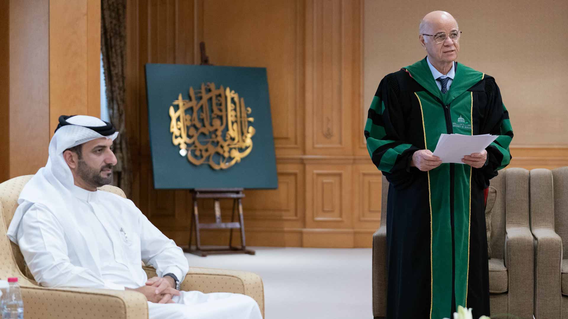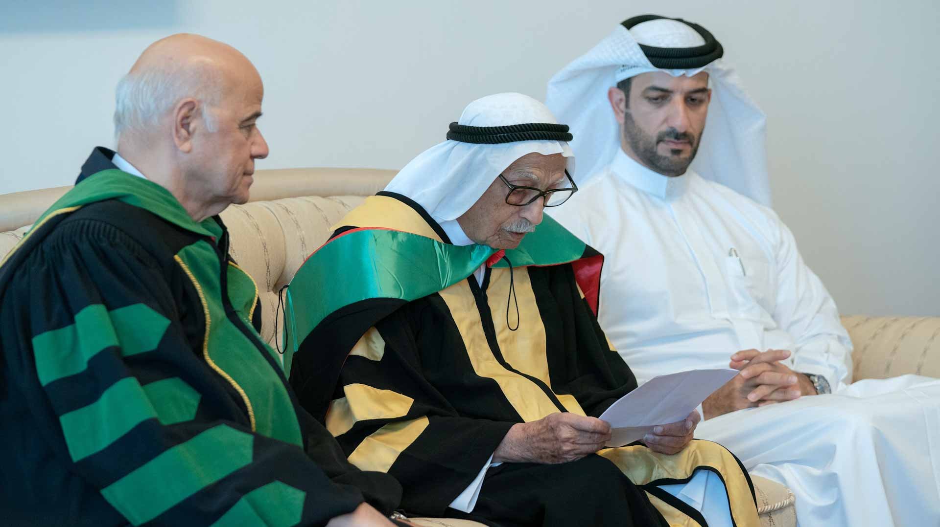 كما قدم شكره وتقديره إلى سمو الشيخ سلطان بن أحمد القاسمي على حضور سموه وزيارته له، ومنحه هذا التكريم الكبير الذي يفتخر ويعتز به لما لجامعة الشارقة من منزلة علمية سامية، ولانتسابها إلى شيخ وعالم جليل، له مكانة سامية، ارتقى بالعلم وأهله، فارتقت منزلته في قلوب الجميع.