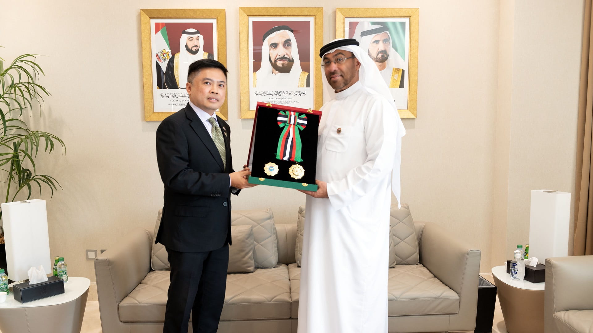 وقلّد معالي أحمد علي الصايغ وزير دولة، بوابينيا الوسام خلال استقباله في ديوان عام وزارة الخارجية والتعاون الدولي في أبوظبي، وأثنى معاليه على مساهمة سعادته في تطوير العلاقات بين الإمارات العربية المتحدة ومملكة تايلاند والدفع، بالتعاون الثنائي قدماً خلال سنوات عمله في الدولة.