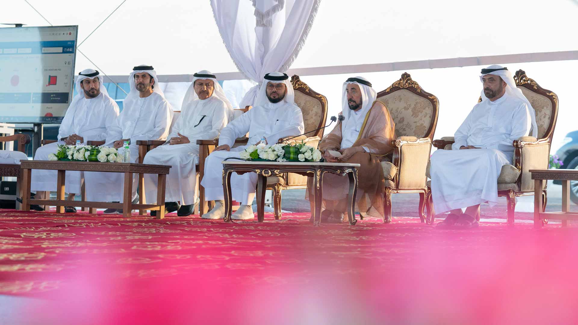 رافق سموه خلال الإطلاق كل من سعادة الدكتور خليفة مصبح الطنيجي رئيس دائرة الزراعة والثروة الحيوانية، وسعادة الدكتور سليمان سرحان الزعابي رئيس دائرة شؤون البلديات، وسعادة محمد عبيد الزعابي رئيس دائرة التشريفات والضيافة، وسعادة سعيد سلطان بالجيو السويدي رئيس هيئة كهرباء ومياه وغاز الشارقة، وعدد من رؤساء المجالس البلدية ومدراء البلديات وأعيان المنطقة الوسطى.