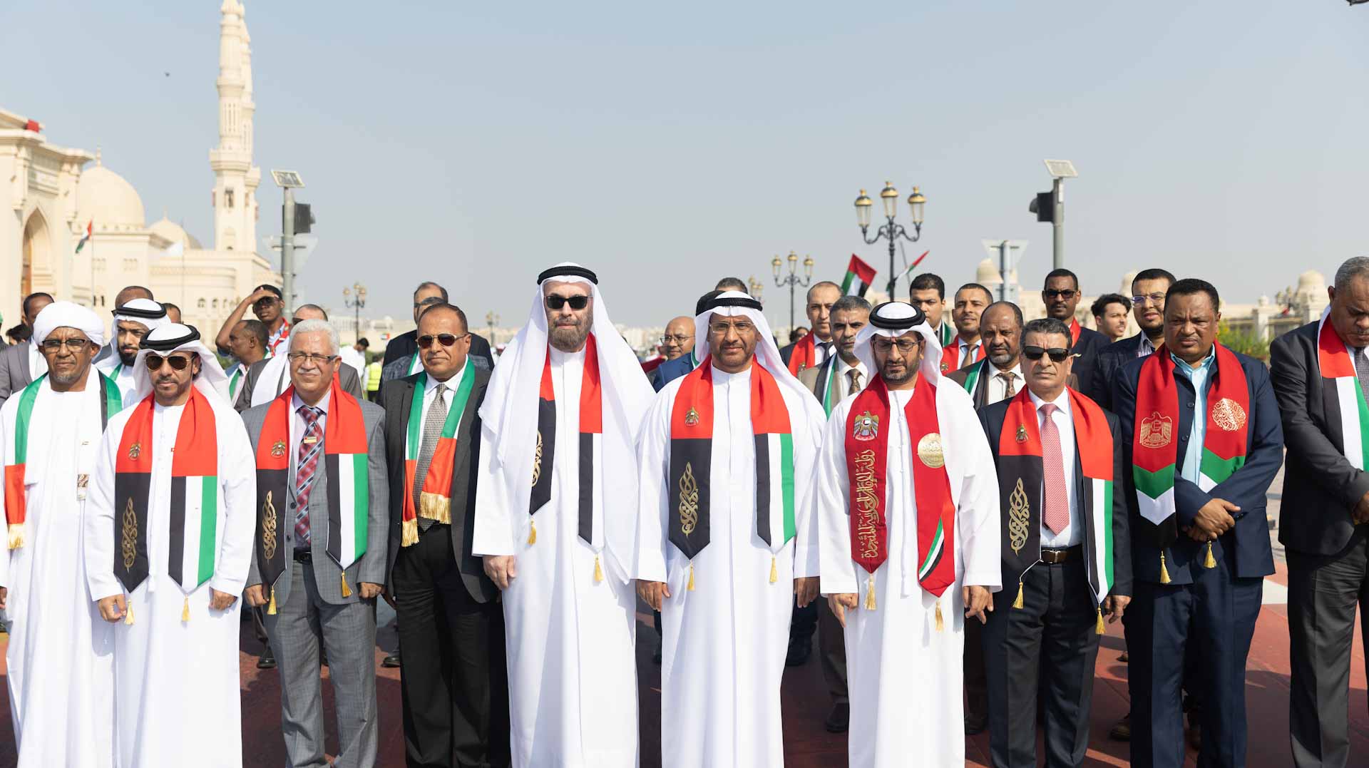 بدأت الاحتفالات من خلال عمادة شؤون الطلبة، بعد أن ازدانت أرجاء الحرم الجامعي بأعلام الدولة التي انتظمت في مشهد رائع عبرّ عن معاني الولاء للقيادة الرشيدة والانتماء لدولة الإمارات العربية المتحدة، تبعته مسيرة للطلبة تقدمتها الفرقة الموسيقية التابعة لأكاديمية العلوم الشرطية وفريق برزة دراجين الإمارات ونادي الشارقة للصقارين بصقورهم الشامخة.