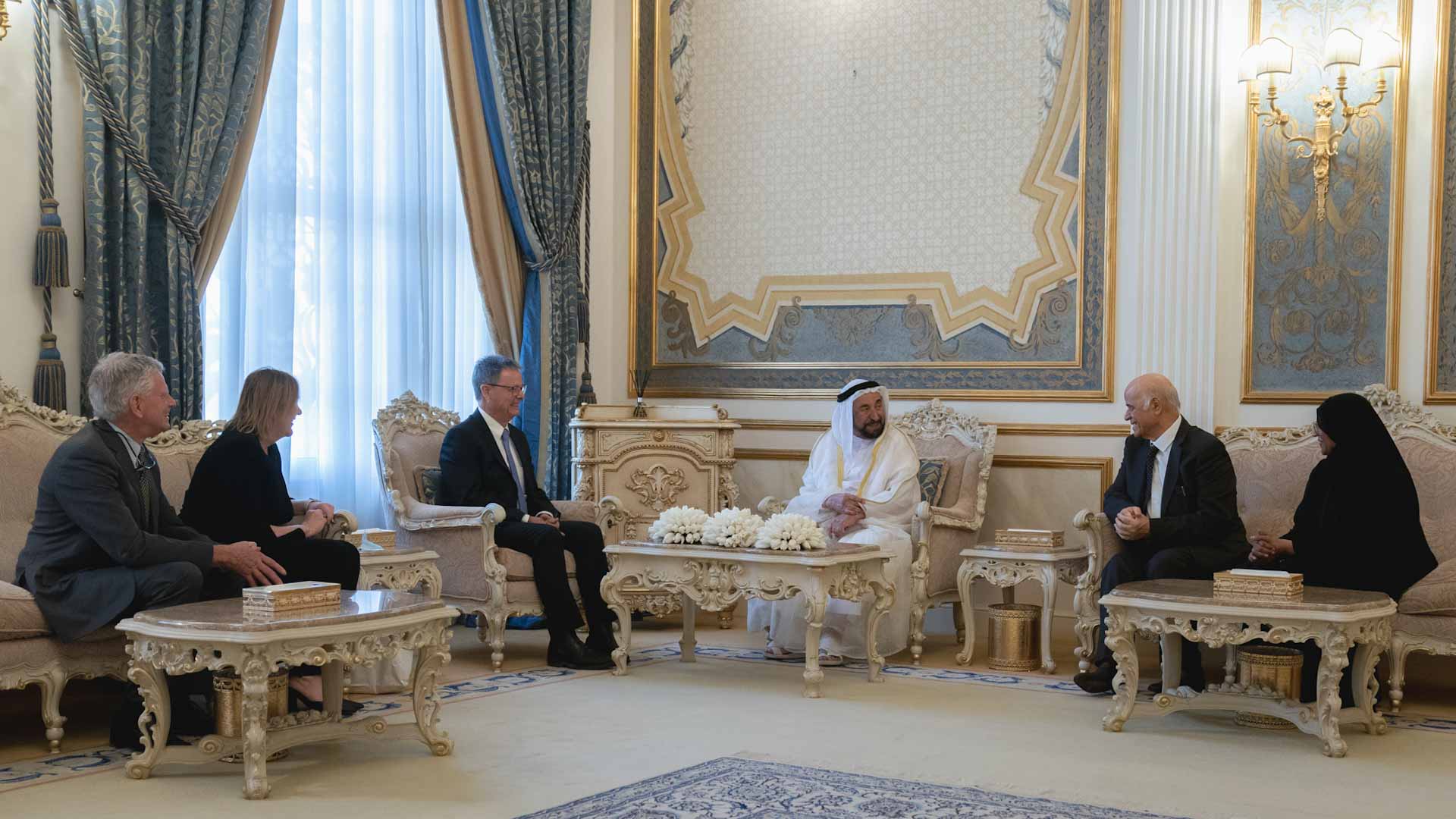 ورحب سموه في بداية اللقاء بالوفد في إمارة الشارقة، التي تبني وتعزز بشكل مستمر العلاقات الوطيدة مع مختلف المؤسسات والجامعات العالمية والمتخصصة، بما ينعكس على تطوير أنظمة التعليم من خلال الاستفادة من الخبرات وعمل مشروعات علمية مشتركة.
