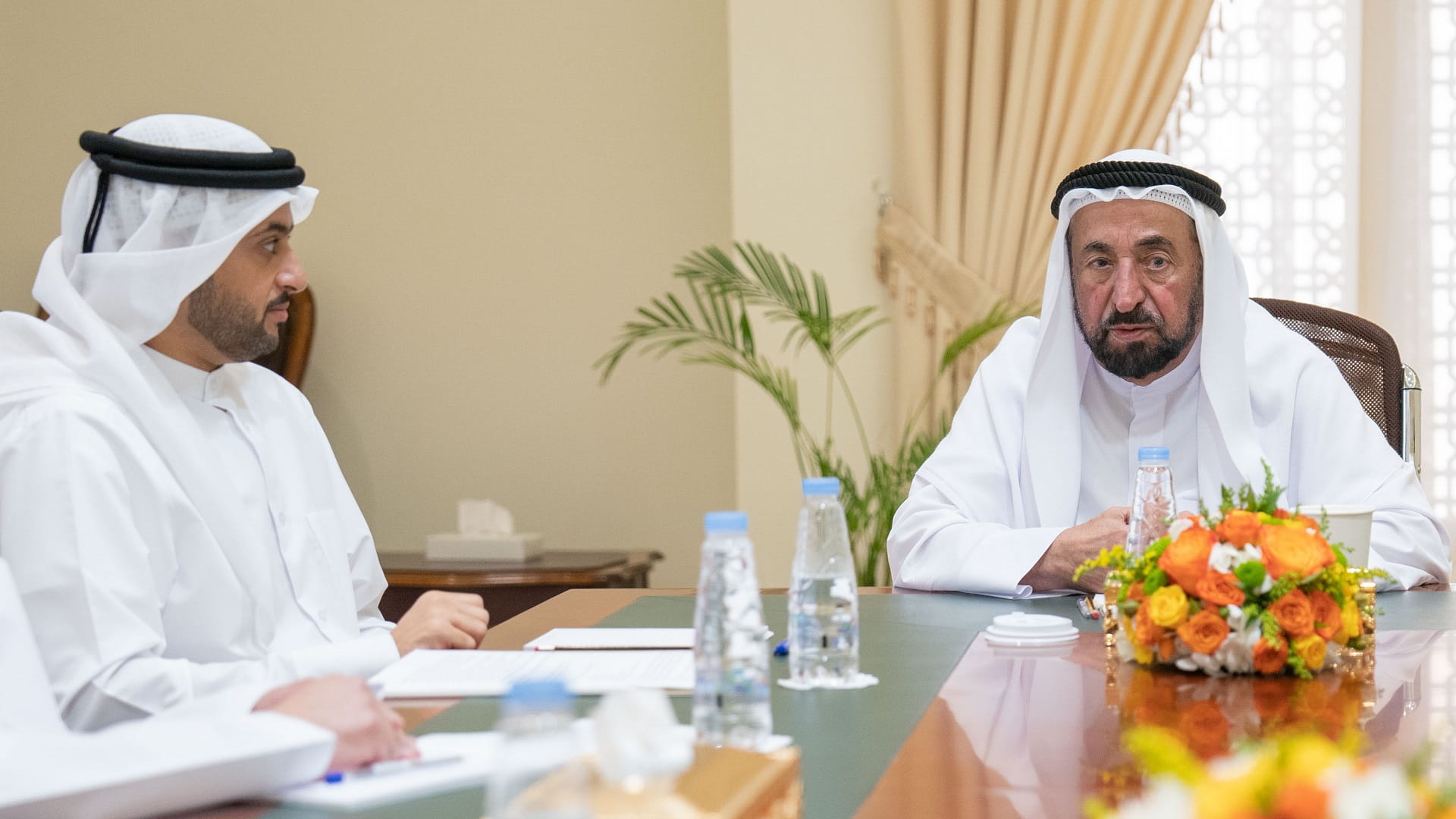 جاء ذلك خلال لقاء سموه صباح اليوم الأربعاء بعدد من رؤساء الدوائر الحكومية وذلك في دارة الدكتور سلطان القاسمي.