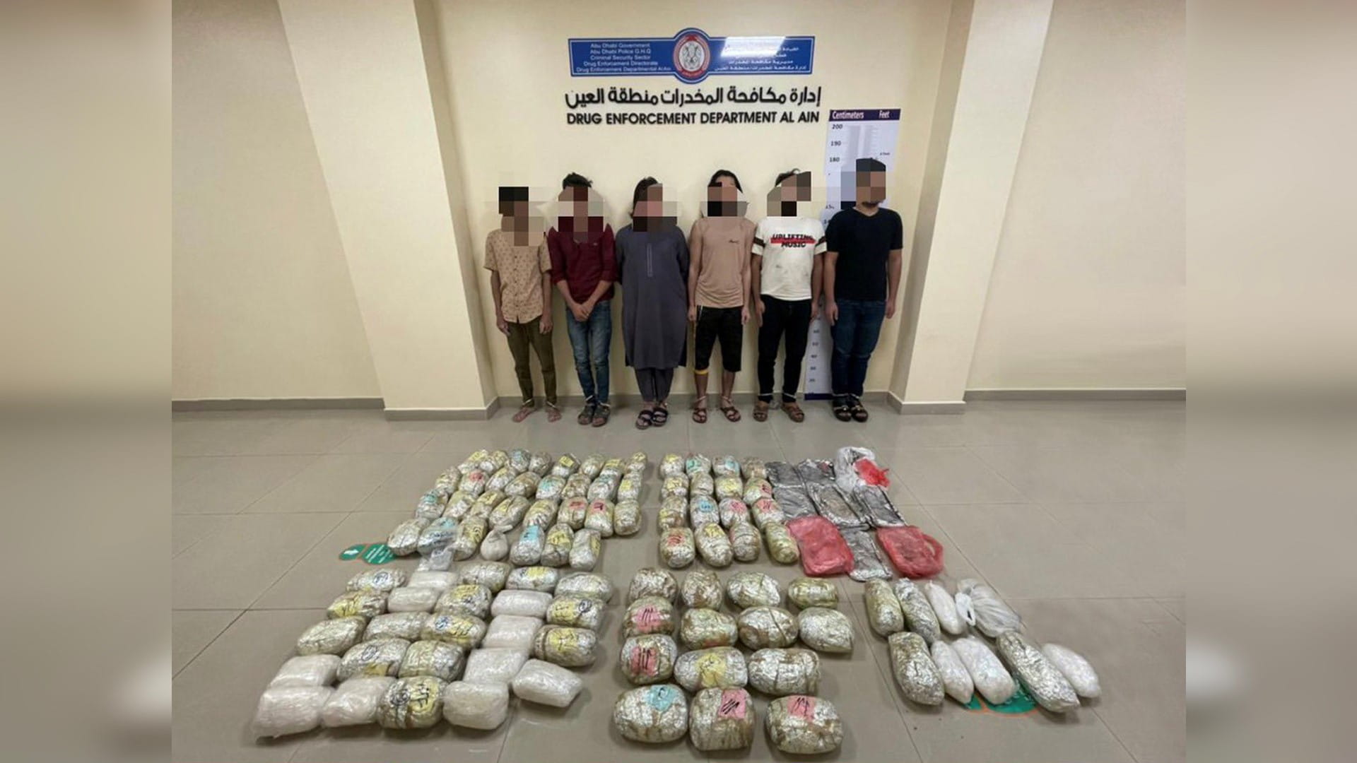 تعزيزاً للأمن والأمان، أحبطت شرطة أبوظبي ترويج 107 كيلوغراماً من مخدريّ الكريستال والحشيش بحوزة عصابة مكونة من 6 أشخاص من الجنسية العربية والآسيوية في عملية أطلقت عليها اسم "المخابئ السرية".