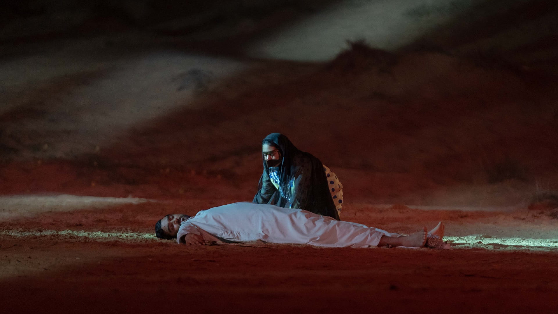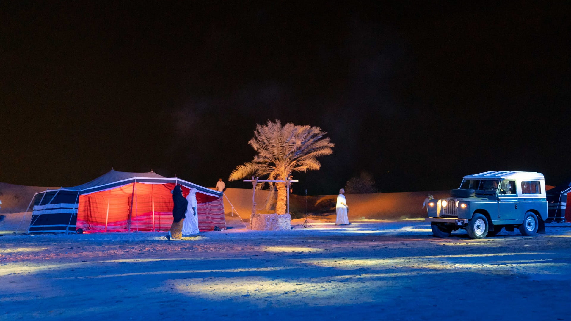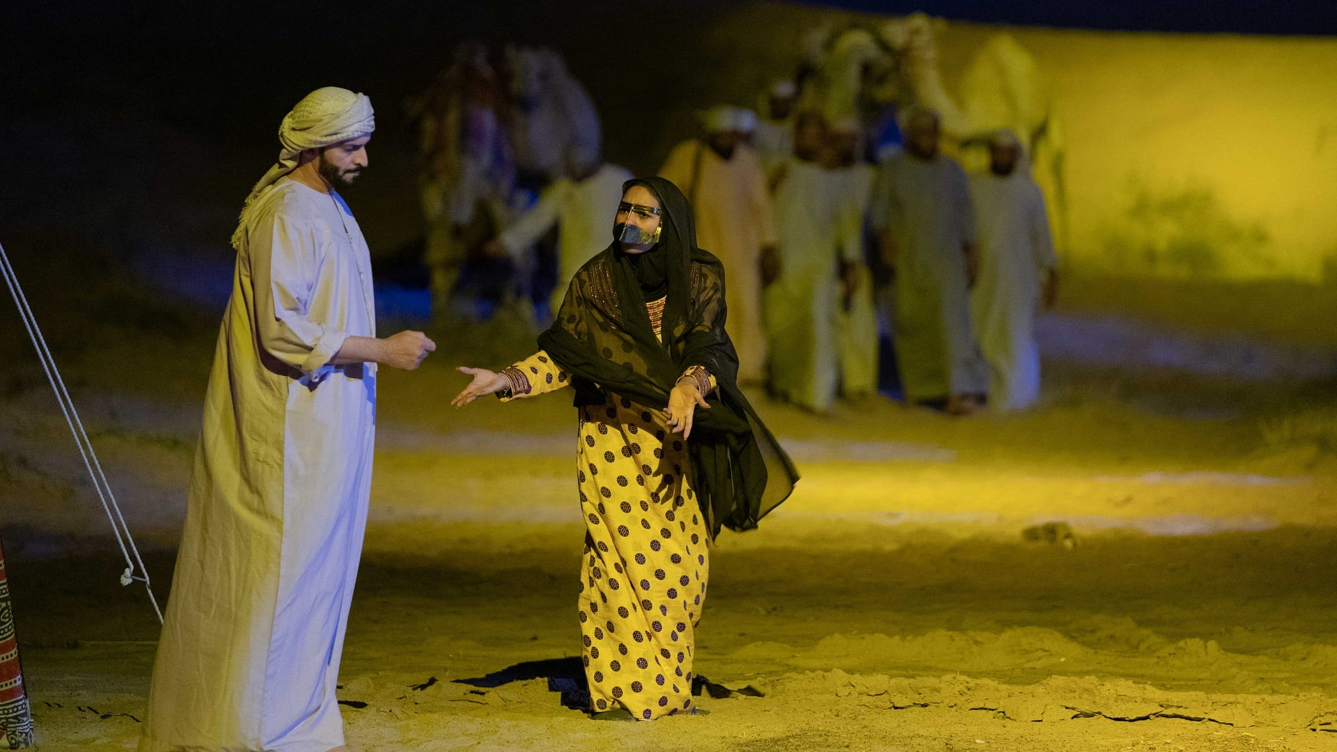 وشمل العرض، العديد من فنون الأداء، منها السرد والشعر والاستعراض ومشاركة الخيول والجمال في المشاهد، إضافة إلى استخدام مجموعة من العناصر أسهمت في توفير فضاء مسرحي مميز أوصل فكرة وأهداف النص للجمهور.