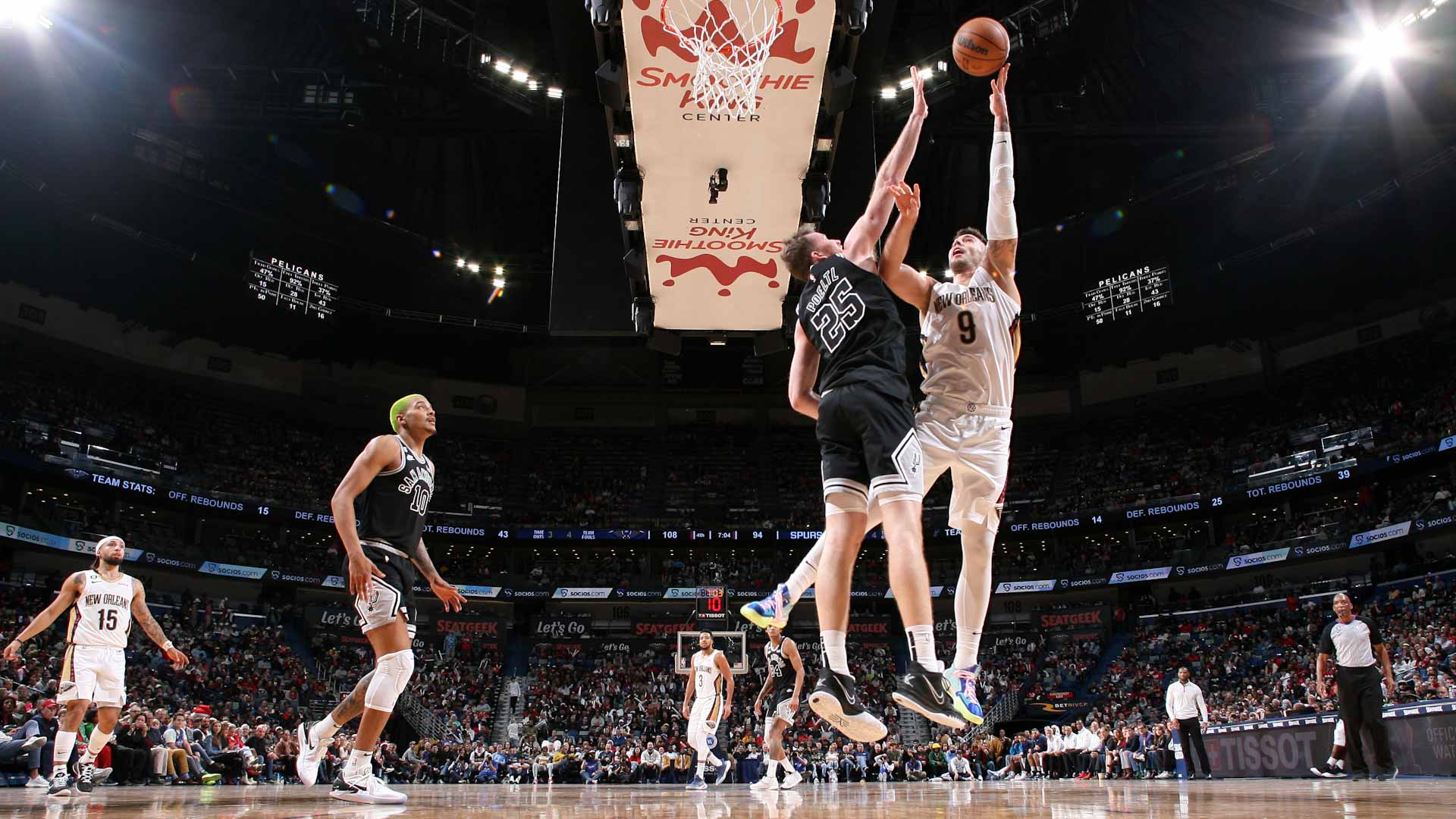 تقدم بيليكانز 94-75 في نهاية الربع الثالث، وعلى الرغم من تسجيل سان انتونيو 42 نقطة في الربع الأخير، الا أن ماكولوم بقي في المرصاد بعدما أحرز 7 ثلاثيات من أصل 14 محاولة خلال المباراة.
