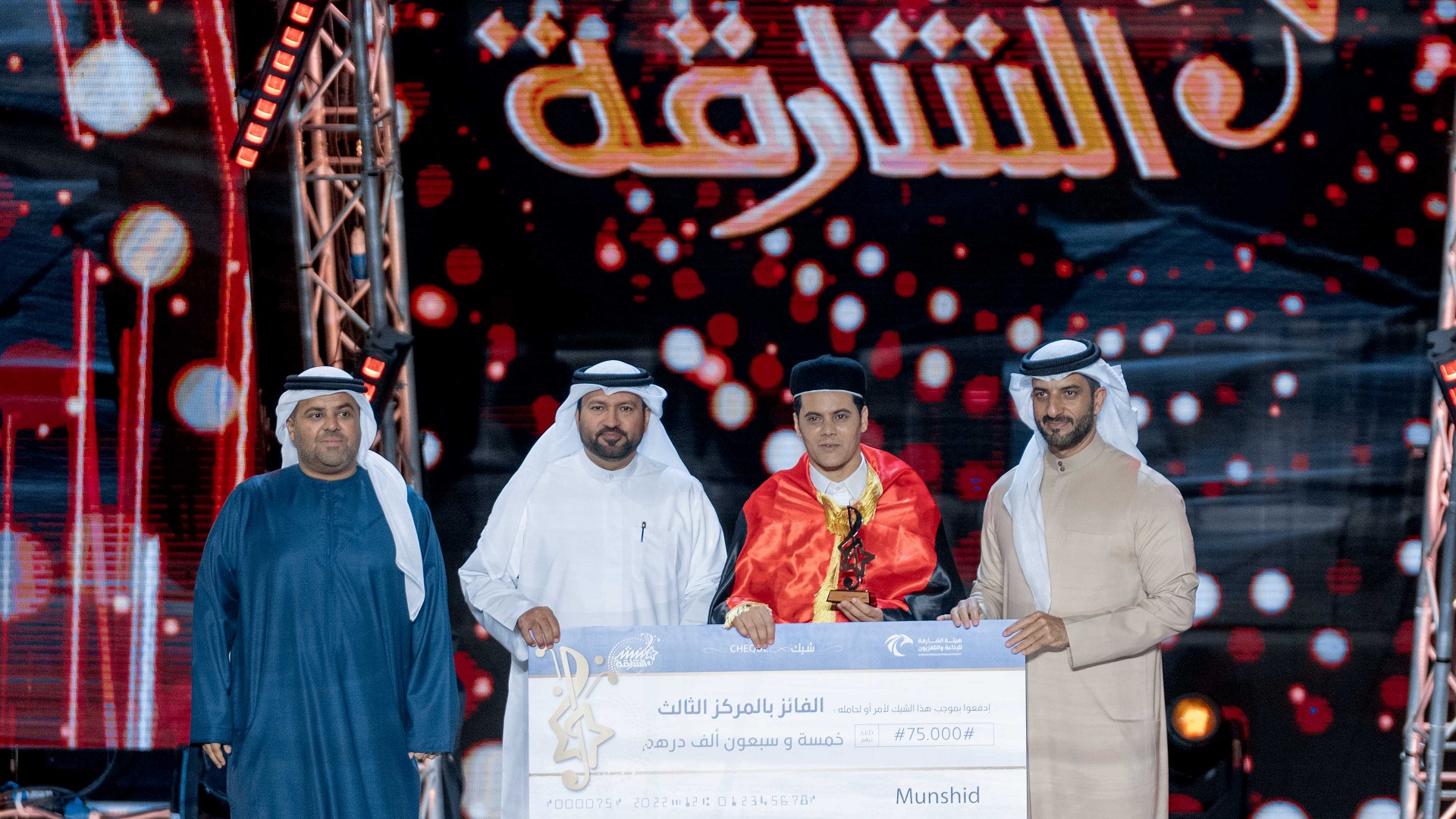 وتوزعت الجوائز المالية لمنشد الشارقة على 200 ألف درهم للفائز بالمركز الأول، فيما حصل الفائز بالمركز الثاني على مبلغ 100 ألف درهم، والفائز بالمركز الثالث على مبلغ 75 ألف درهم.