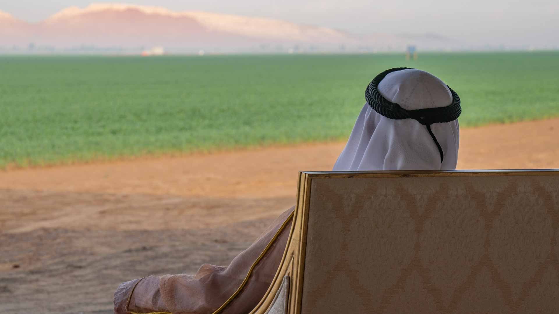 واطلع سموه فور وصوله، على المزرعة، ونبات القمح الذي تمت زراعته في نوفمبر الماضي على مساحة 400 هكتار، كمرحلة أولى للمزرعة، متفقداً سموه كافة العمليات الخاصة بمتابعة زراعة محصول القمح، من عمليات ري ونظافة وغيرها.