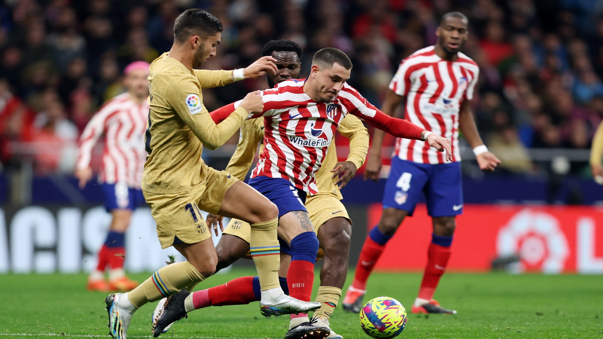 انفرد برشلونة بصدارة الدوري الإسباني لكرة القدم أمام غريمه الأزلي ريال مدريد، بفوزه على فريق العاصمة الآخر أتلتيكو 1-0 في مباراة مشحونة ضمن المرحلة السادسة عشرة.