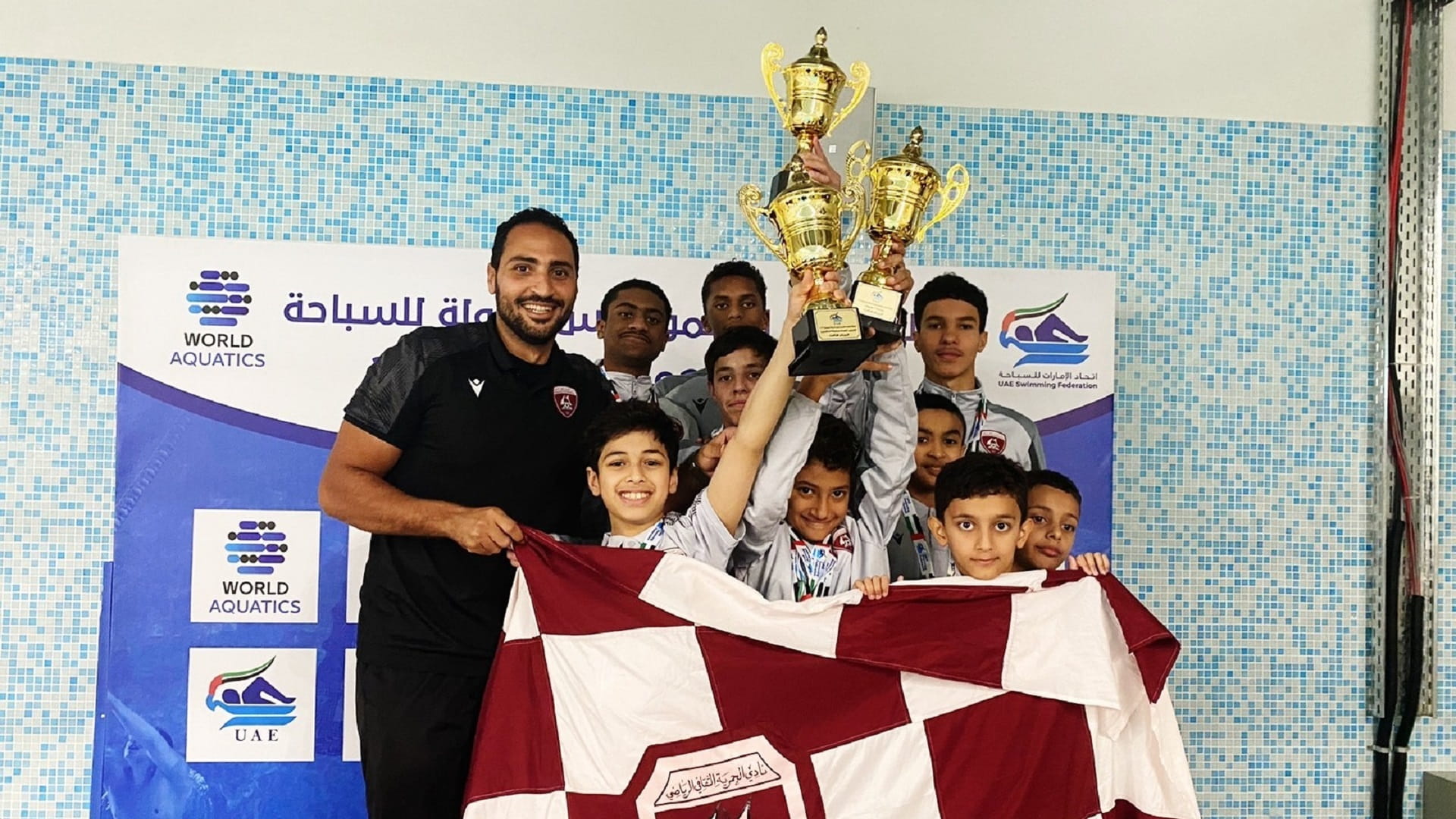حصد فريق الحمرية للسباحة، 3 كؤوس، و26 ميدالية ملونة، يوم الأحد، في بطولة صاحب السمو رئيس الدولة لسباحة المجرى الطويل "للعمومي والناشئين" المقامة حالياً في نادي مليحة.