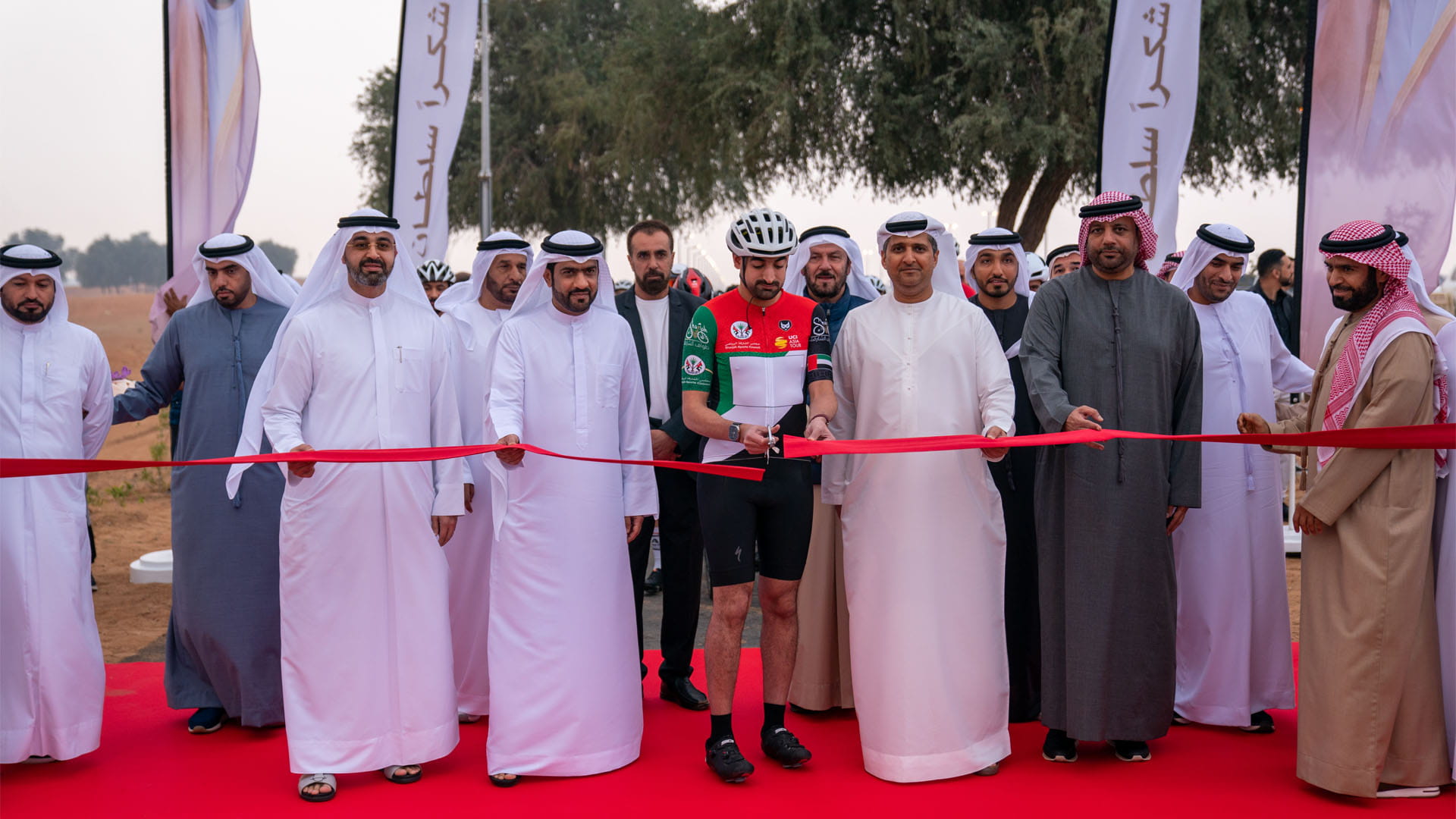 حضر التدشين سعادة المستشار المهندس صلاح بن بطي المهيري، رئيس هيئة تنفيذ المبادرات، وسعادة المهندس خالد بن بطي المهيري، رئيس دائرة التخطيط والمساحة، وسعادة المهندس يوسف خميس العثمني، رئيس هيئة الطرق والمواصلات بإمارة الشارقة، وسعادة محمد حسن خلف مدير عام هيئة الشارقة للإذاعة والتلفزيون، وسعادة عيسى هلال رئيس مجلس الشارقة الرياضي ونائبه سعادة عبد الملك جاني، وسعادة منصور بوعصيبة رئيس اتحاد الإمارات للدراجات، وسعادة ياسر الدوخي الأمين العام لاتحاد الامارات للدراجات.