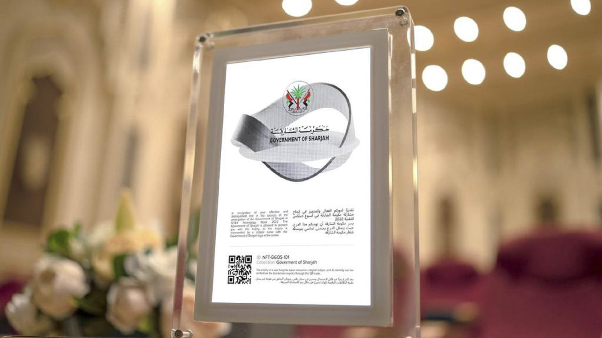 كرّم الشيخ سعود بن سلطان القاسمي رئيس اللجنة العليا لجناح حكومة الشارقة في "أسبوع جيتكس للتقنية 2022" مدير مكتب الشارقة الرقمية، خلال حفل أقيم يوم الخميس، على مسرح الجامعة القاسمية، الجهات المشاركة في الحدث والداعمة، وسلمهم دروعاً رقمية بتقنية الرموز غير قابلة للاستبدال "إن أف تي" بنظام "سول باوند توكن"، وهي الأولى من نوعها في العالم التي تحل مكان الدروع التذكارية التقليدية.