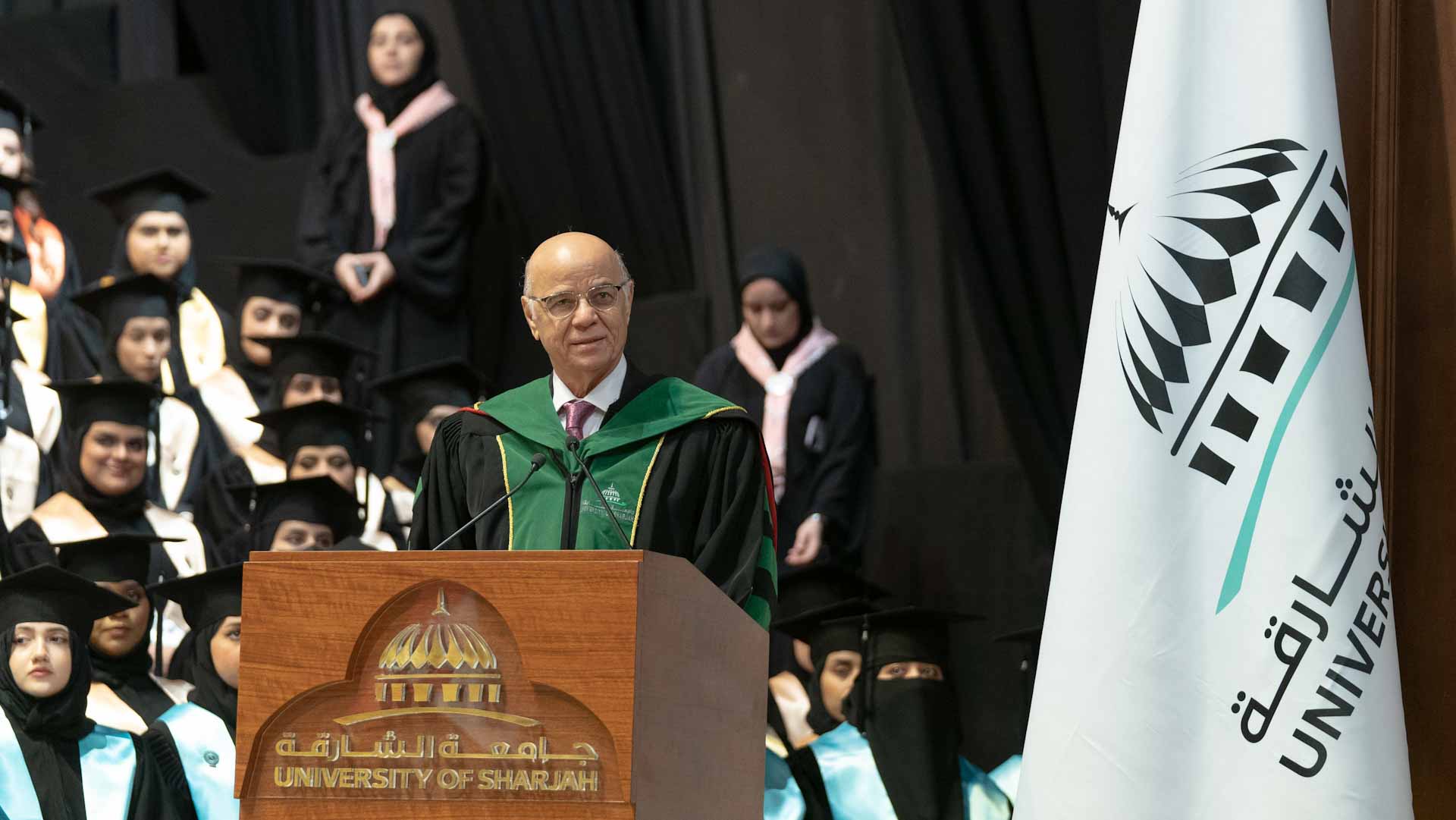 وتناول مدير الجامعة في كلمته الجهود الكبيرة والاهتمام اللامحدود لصاحب السمو الشيخ الدكتور سلطان بن محمد القاسمي، عضو المجلس الأعلى حاكم الشارقة في تأسيس وبناء جامعة الشارقة مما أسهم في تقدمها العلمي الرفيع الذي تحظى به، ويفتخر به كل خريجي وخريجات الجامعة.
