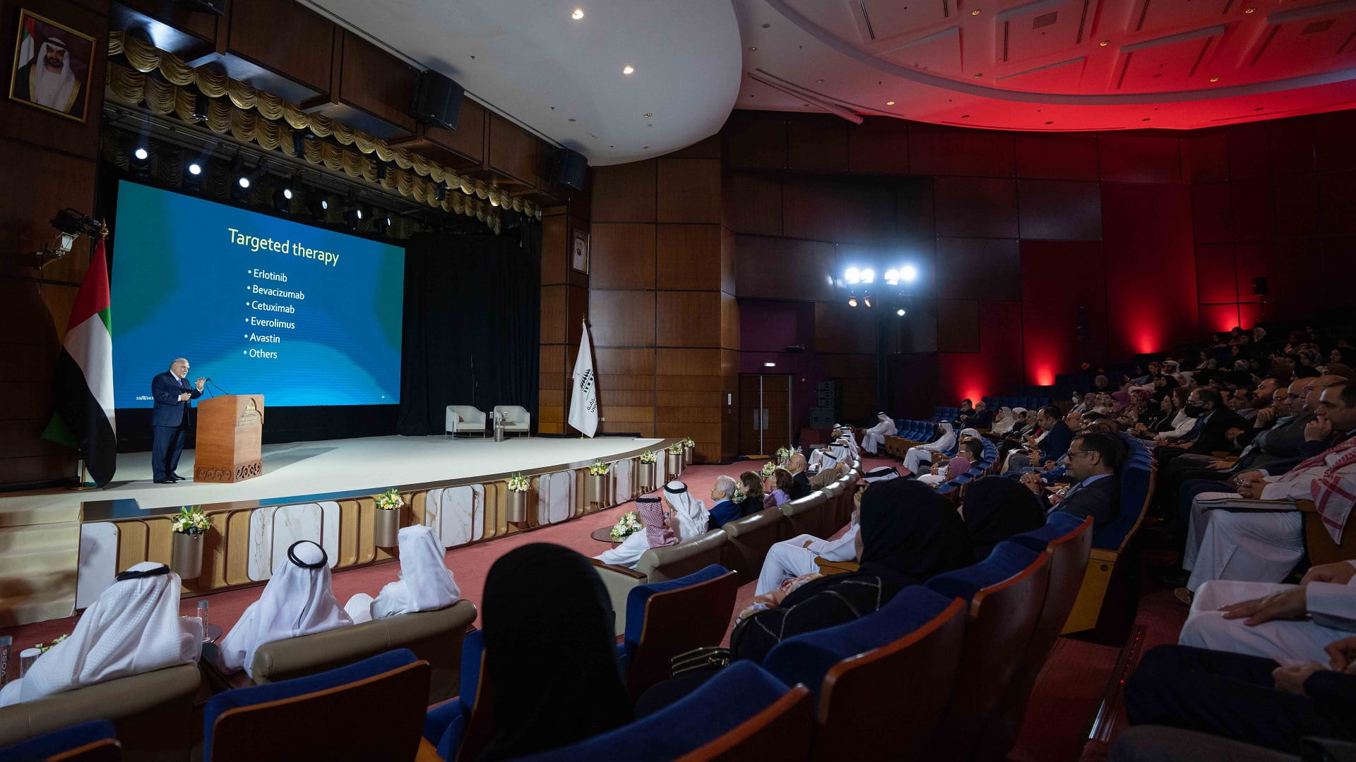 شهد صاحب السمو الشيخ الدكتور سلطان بن محمد القاسمي، عضو المجلس الأعلى حاكم الشارقة، صباح اليوم السبت، بحضور سمو الشيخ سلطان بن أحمد بن سلطان القاسمي، نائب حاكم الشارقة، رئيس جامعة الشارقة، محاضرة علمية عن آخر المستجدات في علاج أمراض السرطان قدمها الدكتور فيليب سالم، رئيس مركز سالم لعلاج الأورام في الولايات المتحدة الأميركية، وذلك في قاعة الرازي بمجمع الكليات الطبية والصحية بجامعة الشارقة.