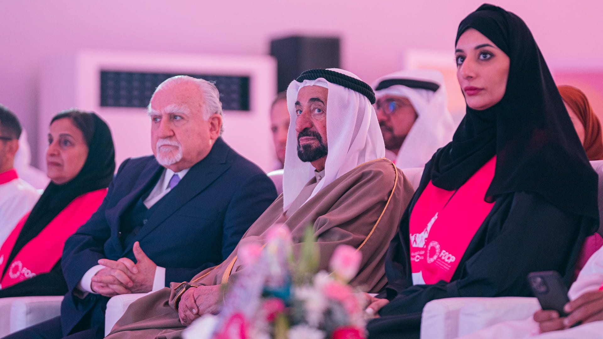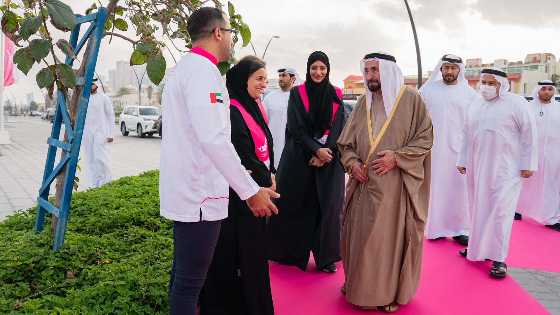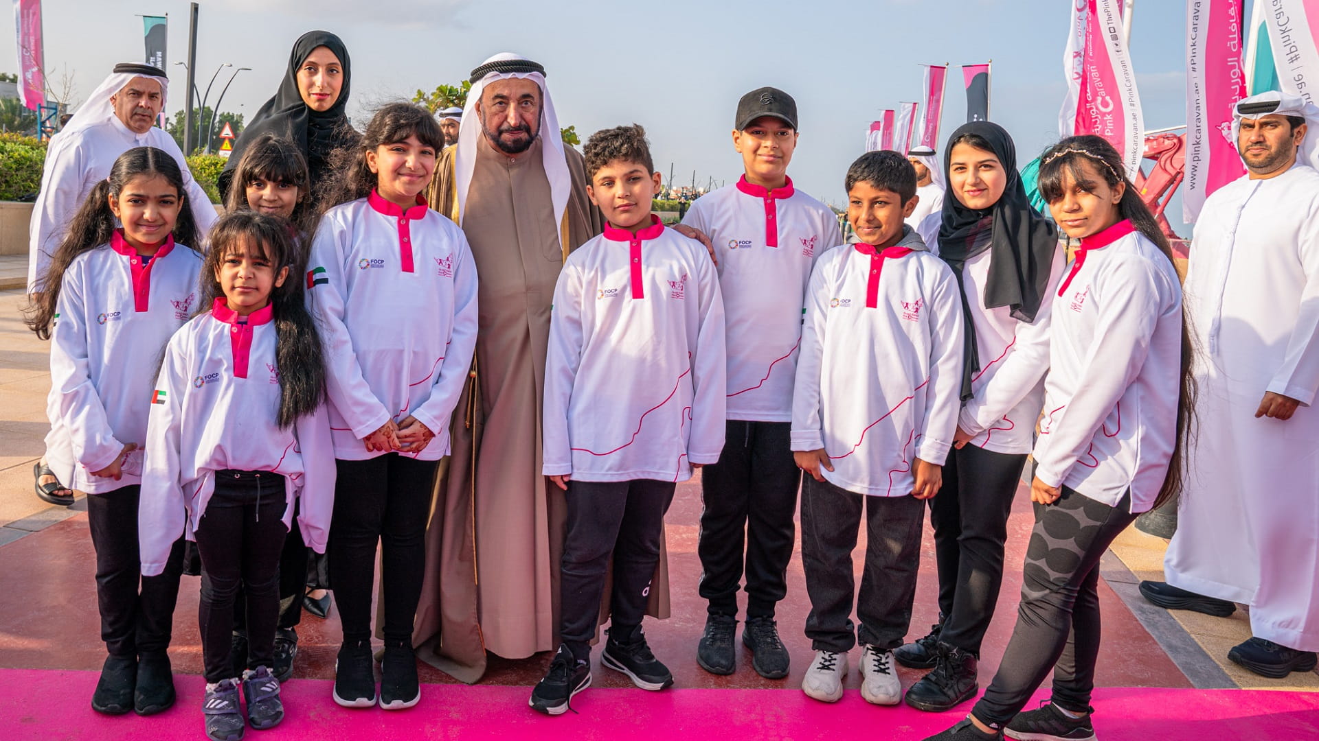 وتفضل صاحب السمو حاكم الشارقة، عقب نهاية حفل الافتتاح بإعطاء إشارة البدء لـ "مسيرة فرسان القافلة الوردية" في دورتها الحادية عشرة، معلناً سموه بذلك انطلاق فرسان القافلة، يتقدمهم الشيخ فاهم بن سلطان القاسمي، رئيس دائرة العلاقات الحكومية، المبعوث الخاص لمسيرة فرسان القافلة الوردية، في مسيرتهم التي ستجوب مختلف أنحاء دولة الإمارات، بهدف تقديم فحوصات الكشف المبكر لمرض سرطان الثدي، وزيادة الوعي به.