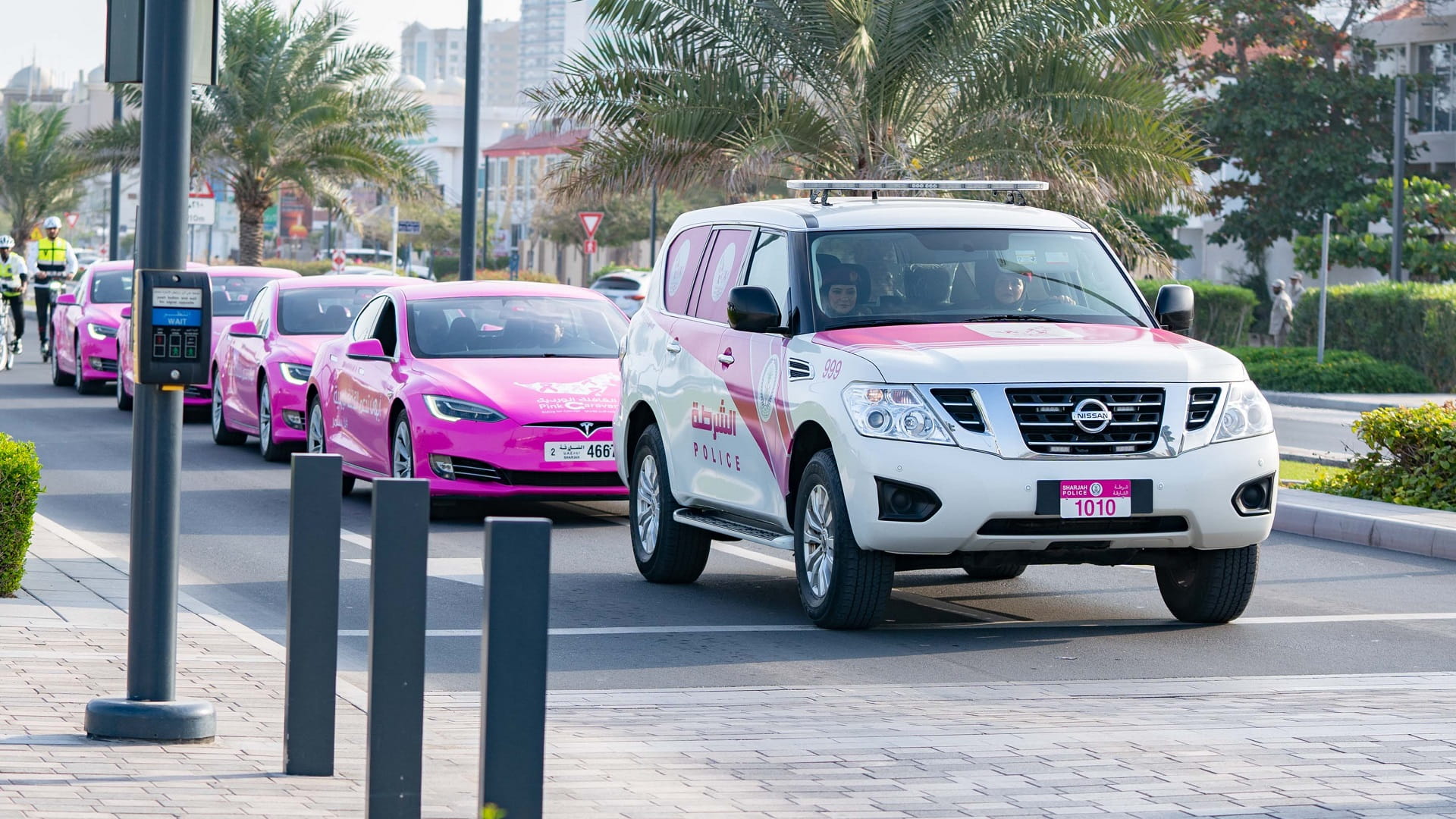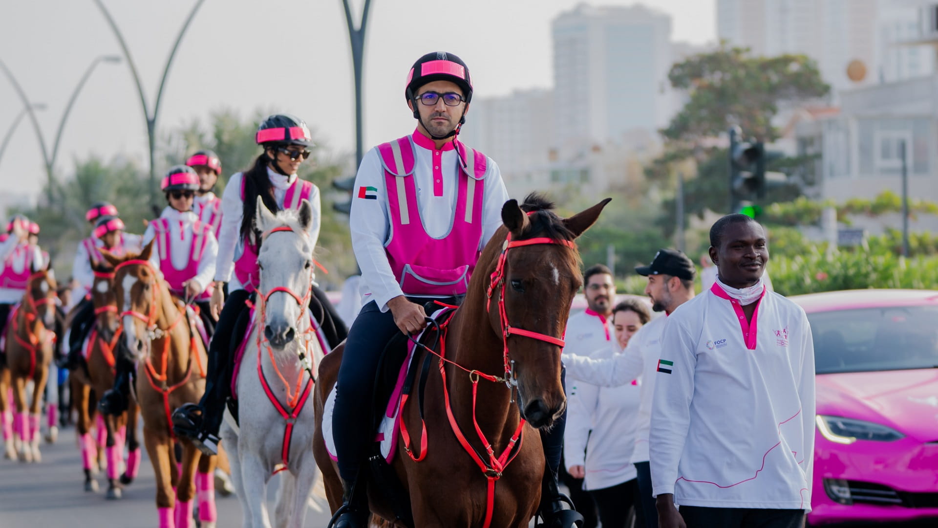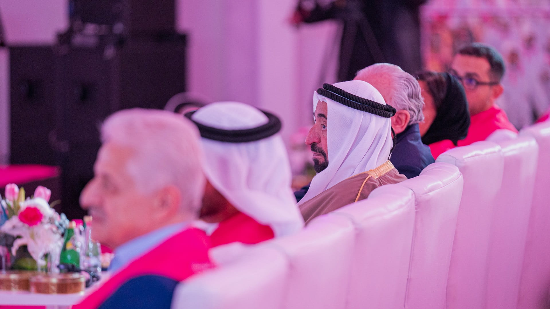 وتفضل صاحب السمو حاكم الشارقة، عقب نهاية حفل الافتتاح بإعطاء إشارة البدء لـ "مسيرة فرسان القافلة الوردية" في دورتها الحادية عشرة، معلناً سموه بذلك انطلاق فرسان القافلة، يتقدمهم الشيخ فاهم بن سلطان القاسمي، رئيس دائرة العلاقات الحكومية، المبعوث الخاص لمسيرة فرسان القافلة الوردية، في مسيرتهم التي ستجوب مختلف أنحاء دولة الإمارات، بهدف تقديم فحوصات الكشف المبكر لمرض سرطان الثدي، وزيادة الوعي به.