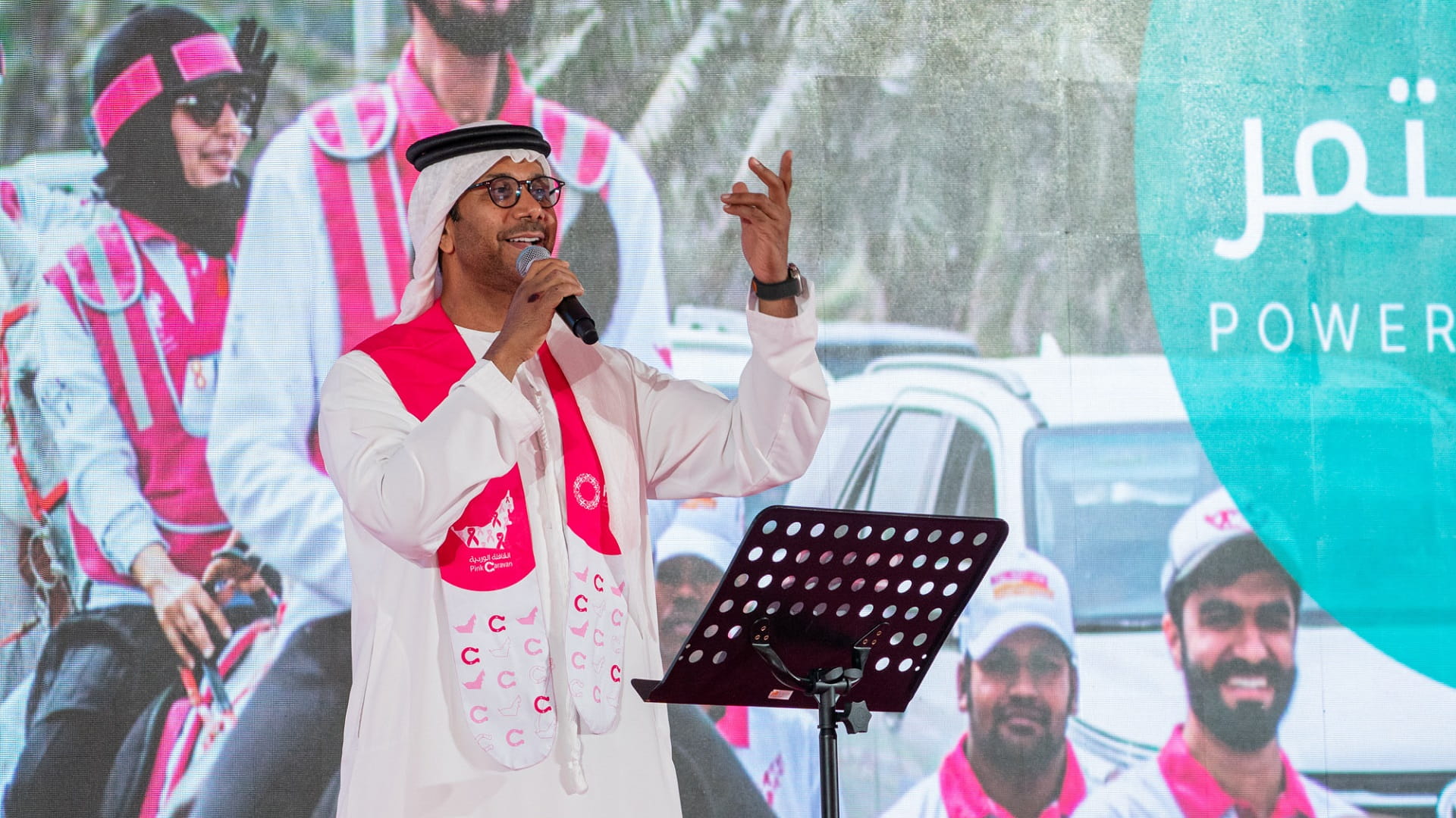 وتخلل الحفل عمل غنائي بعنوان "بك نستمر" قام بأدائه الفنان فايز السعيد، أحد أوائل سفراء القافلة الوردية وذلك تكريماً لجهودها الكبيرة.
