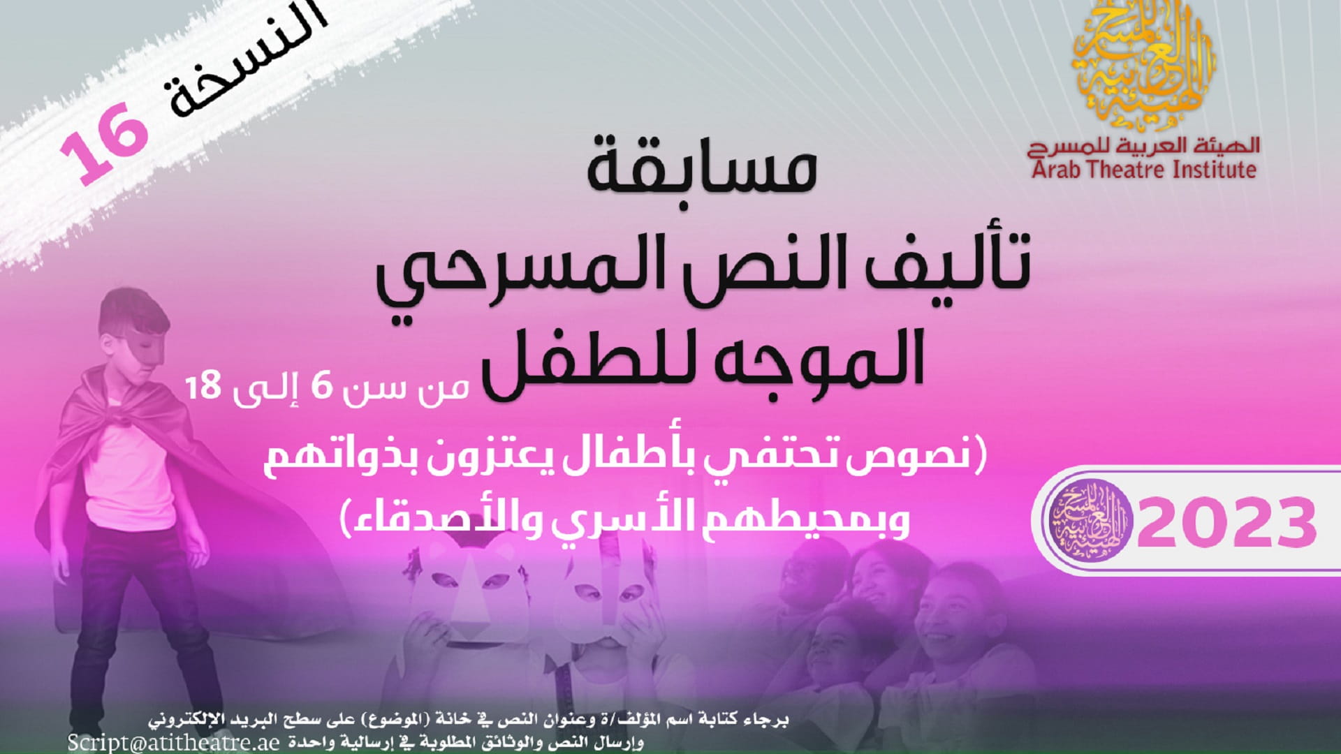 أعلنت الهيئة العربية للمسرح، عن إطلاق النسخة السادسة عشرة من مسابقتي تأليف النص المسرحي الموجهتين للكبار وللأطفال، داعية الكتّاب العرب في كل أنحاء العالم للمشاركة في هذا العام ضمن الثيمتين الموجهتين، واختارت ناظم "نصوص الأرض" لمسابقة تأليف النص المسرحي الموجه للكبار، فيما اختارت "نصوص تحتفي بأطفال يعتزون بذواتهم وبمحيطهم الأسري والأصدقاء" ناظماً لمسابقة تأليف النص الموجه للأطفال.