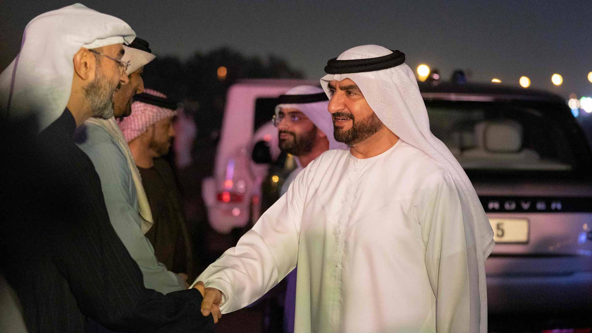 وكان في استقبال سمو نائب حاكم الشارقة كل من: الشيخ ماجد بن سلطان القاسمي رئيس دائرة شؤون الضواحي والقرى، والشيخ سلطان بن عبد الله بن سالم القاسمي مدير دائرة الإحصاء والتنمية المجتمعية، والشيخ فيصل بن سعود القاسمي مدير هيئة مطار الشارقة الدولي، والشيخ سالم بن محمد بن سالم القاسمي مدير هيئة الإنماء التجاري والسياحي، والشيخ سعود بن محمد بن سعود القاسمي الرئيس التنفيذي لقطاع العقارات في الشارقة لإدارة الأصول، وعدد من كبار المسؤولين رؤساء الدوائر الحكومية، وجمع من الفنانين والإعلاميين.