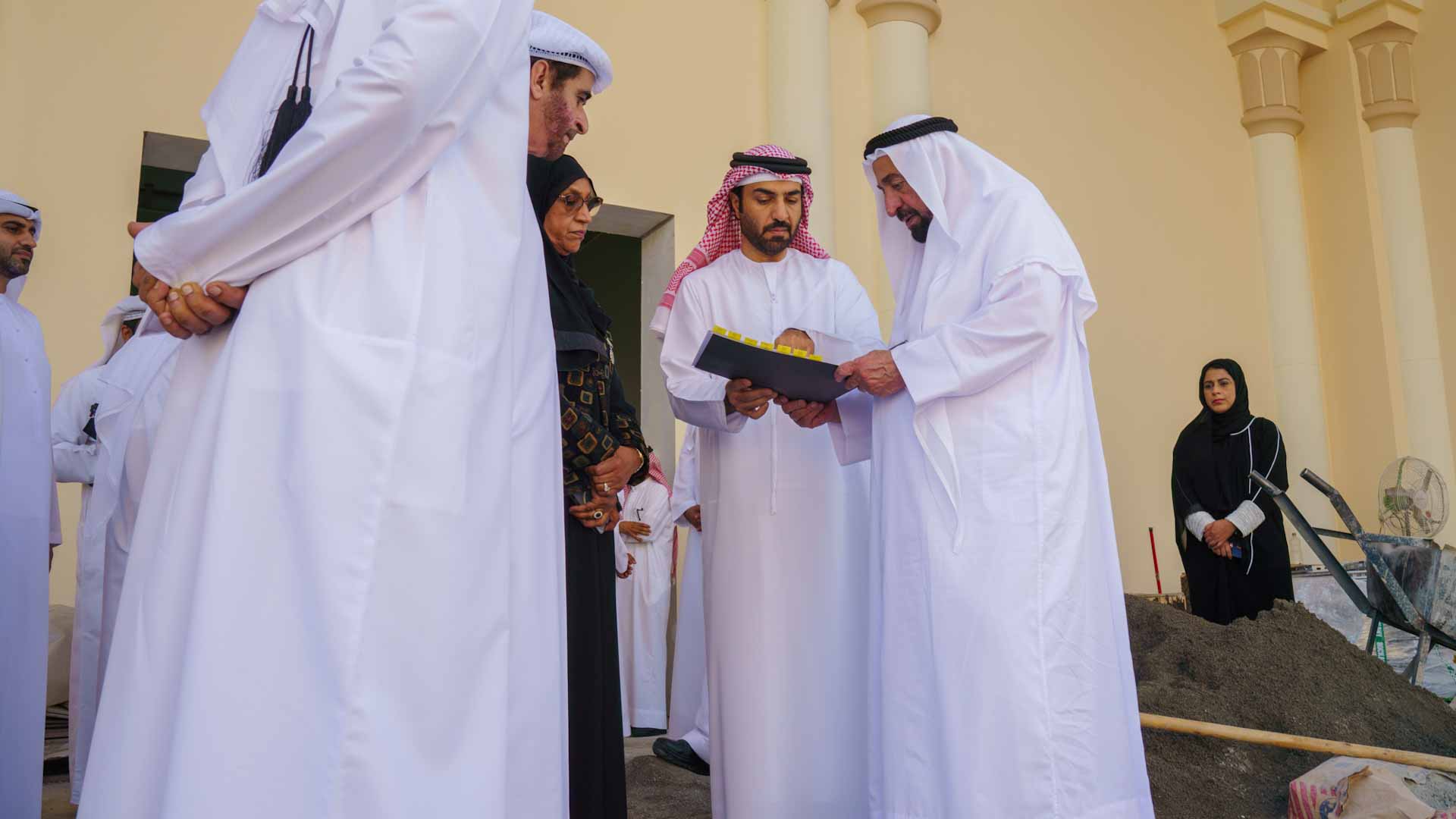 رافق صاحب السمو حاكم الشارقة خلال الزيارة كل من الشيخ هيثم بن صقر القاسمي نائب رئيس مكتب سمو الحاكم في كلباء، وسعادة علي بن شاهين السويدي رئيس دائرة الأشغال العامة، وسعادة سليمان بن سرحان الزعابي رئيس دائرة شؤون البلديات، والدكتور علي عبيد الزعابي مدير جامعة الشارقة فرع كلباء، وعدداً من المسؤولين ومهندسي المشروع.