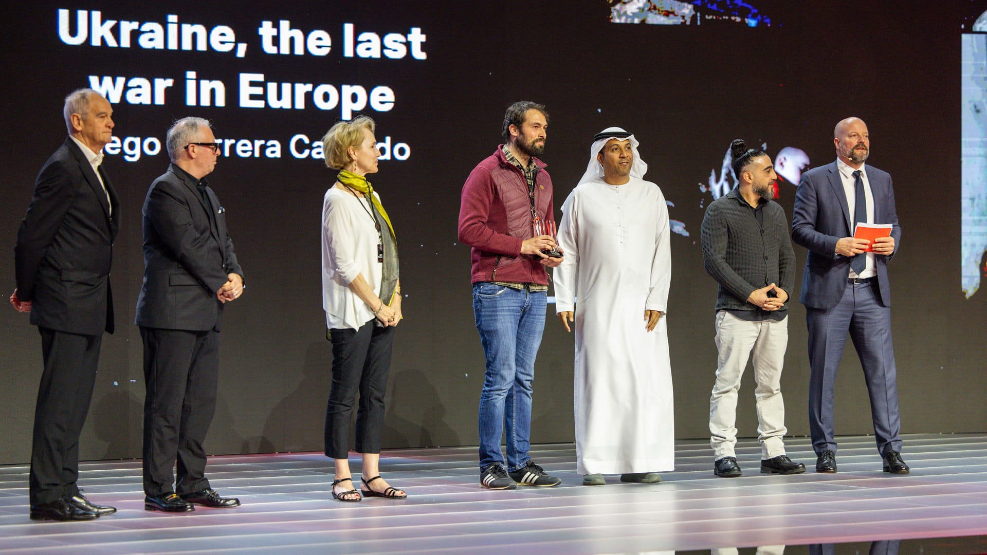 ونال كارسيدو، المصوّر الصحافي الإسباني البالغ من العمر 31 عاماً، المركز الأول عن مشروعه الفريد الذي يلامس المشاعر ويجسّد الحرب الدائرة في أوروبا الشرقية بعنوان "أوكرانيا: آخر حروب أوروبا"، وعمل كارسيدو، خلال مسيرته المهنية في مجال التصوير الصحافي، ضمن بيئات شديدة الخطورة، حيث غطى العديد من النزاعات الاجتماعية حول العالم، وهو أحد الشركاء المؤسِّسين في مجلة "Zooming".