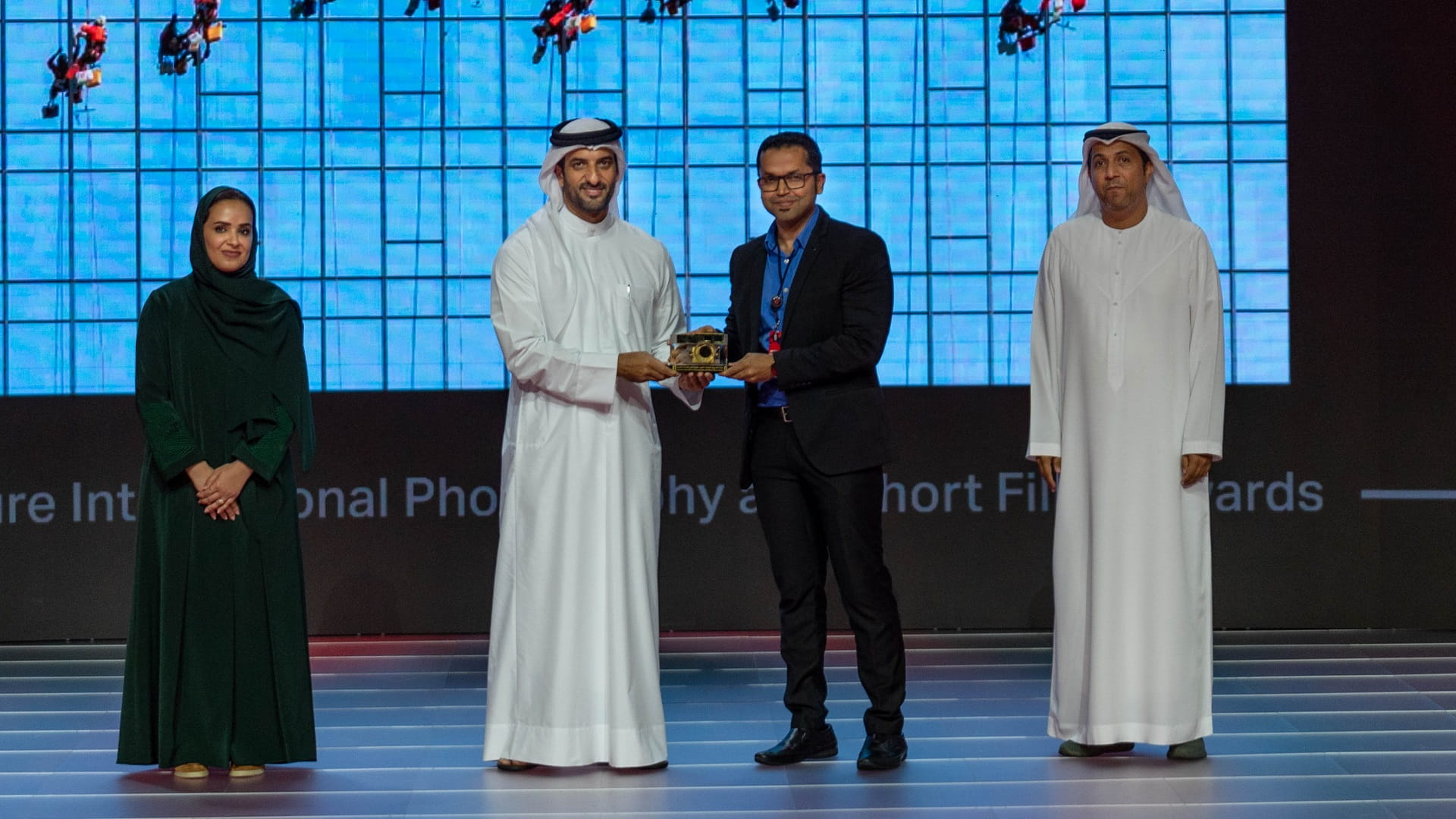 وتفضل سموه، بتكريم الفائزين بالجوائز من مختلف الفئات المشاركة في الجائزة، قام بعدها المصور العالمي راي ويلز بالتعليق على الأعمال الفائزة، موجهاً النصائح للفائزين لتطوير المهارات لديهم وتقديم مواد أكثر إبداعاً للمشاركة في المهرجانات والتجمعات التصويرية المقبلة، حيث يمتلك ويلز خبرةً كبيرةً في السرد القصصي البصري، ولديه عدة تجارب غنية في اختيار الصور التي تعبر عن الجوهر.