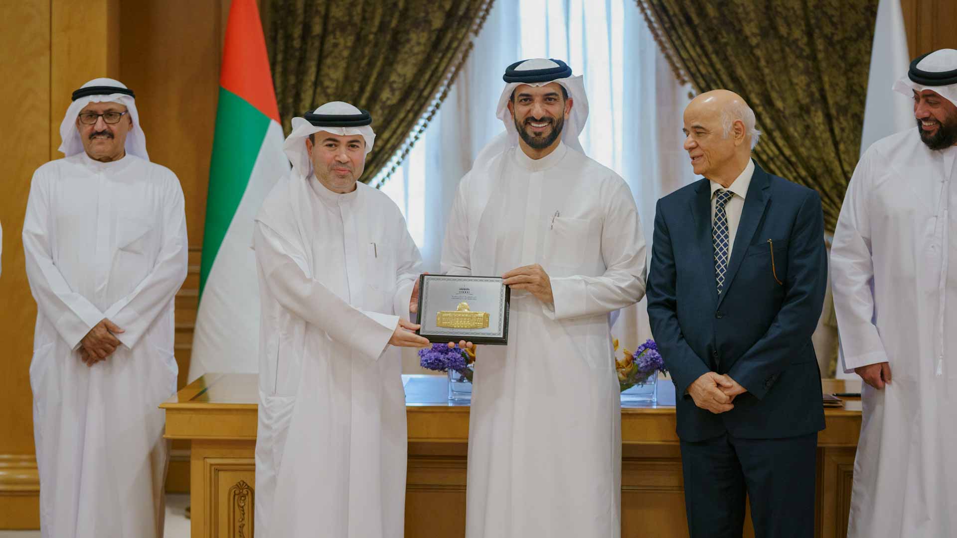في نهاية اللقاء، تسلّم سمو رئيس جامعة الشارقة هدية تذكارية من عبد العزيز سعيد المهيري، كما قدّم سموه درع الجامعة التذكاري إلى رئيس هيئة مجلس أمناء مستشفى الجامعة.