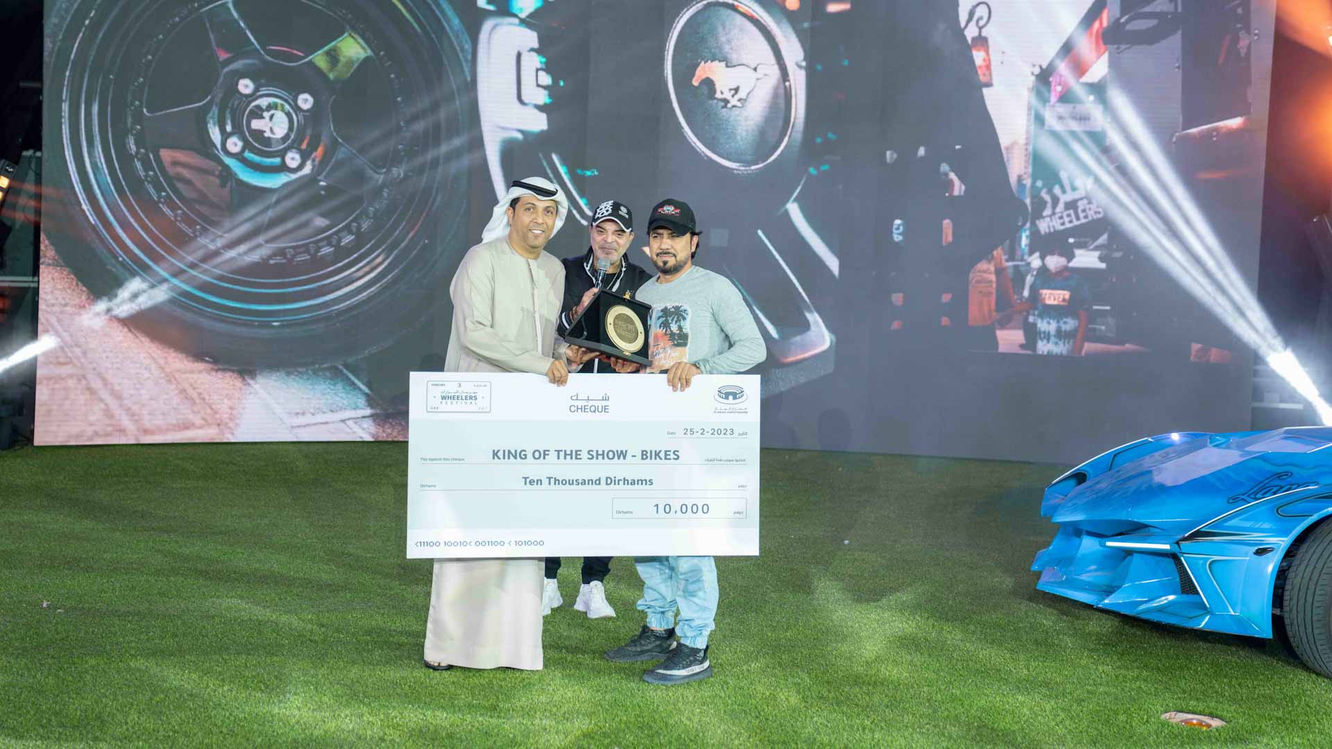 وبعد انتهاء المنافسات في مسابقات أفضل سيارة في المهرجان، وأفضل سيارة كلاسيكية، وأفضل دراجة نارية، كرم سعادة طارق سعيد علاي مدير عام المكتب الإعلامي لحكومة الشارقة الفائزين، وتحت لقب "ملك العرض" فازت عن فئة سيارة المهرجان "الجوكر" لوليد محمد، أما عن فئة السيارة الكلاسيكية فقد حظيت باللقب سيارة "موستنق" لسيف عبد الله، في حين فازت "سلينق شوت" لعبد الحفيظ الجسمي، بفئة أفضل دراجة نارية.