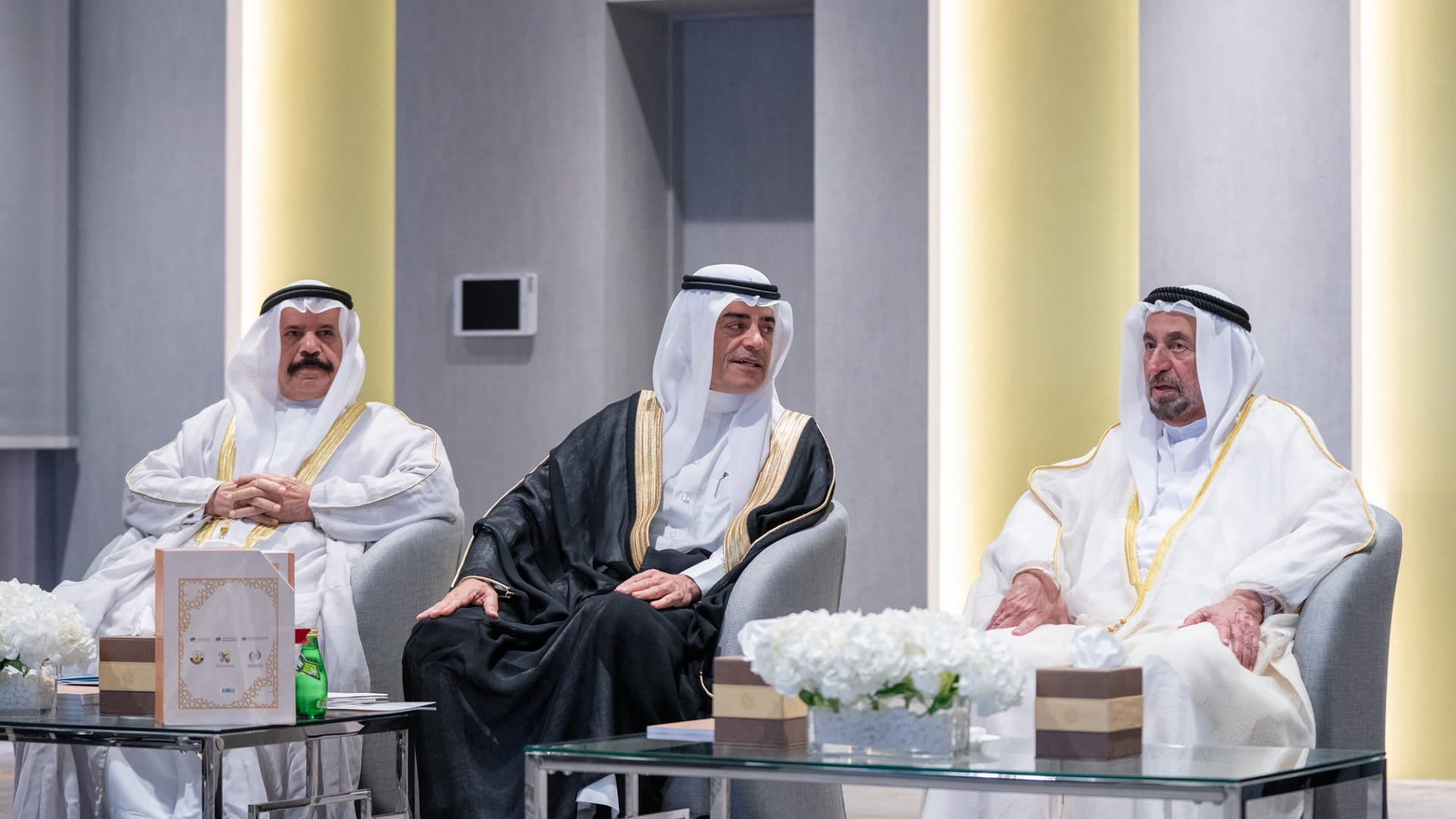 حضر الحفل بجانب صاحب السمو حاكم الشارقة، كل من: الشيخ فاهم بن سلطان القاسمي رئيس دائرة العلاقات الحكومية، وسعادة محمد عبيد الزعابي رئيس دائرة التشريفات والضيافة، والدكتور عبيد الهاجري مدير المكتب الإقليمي لـ "الإيسيسكو" في الشارقة، وعدد من الخبراء والعلماء والأكاديميين المختصين في الآثار.