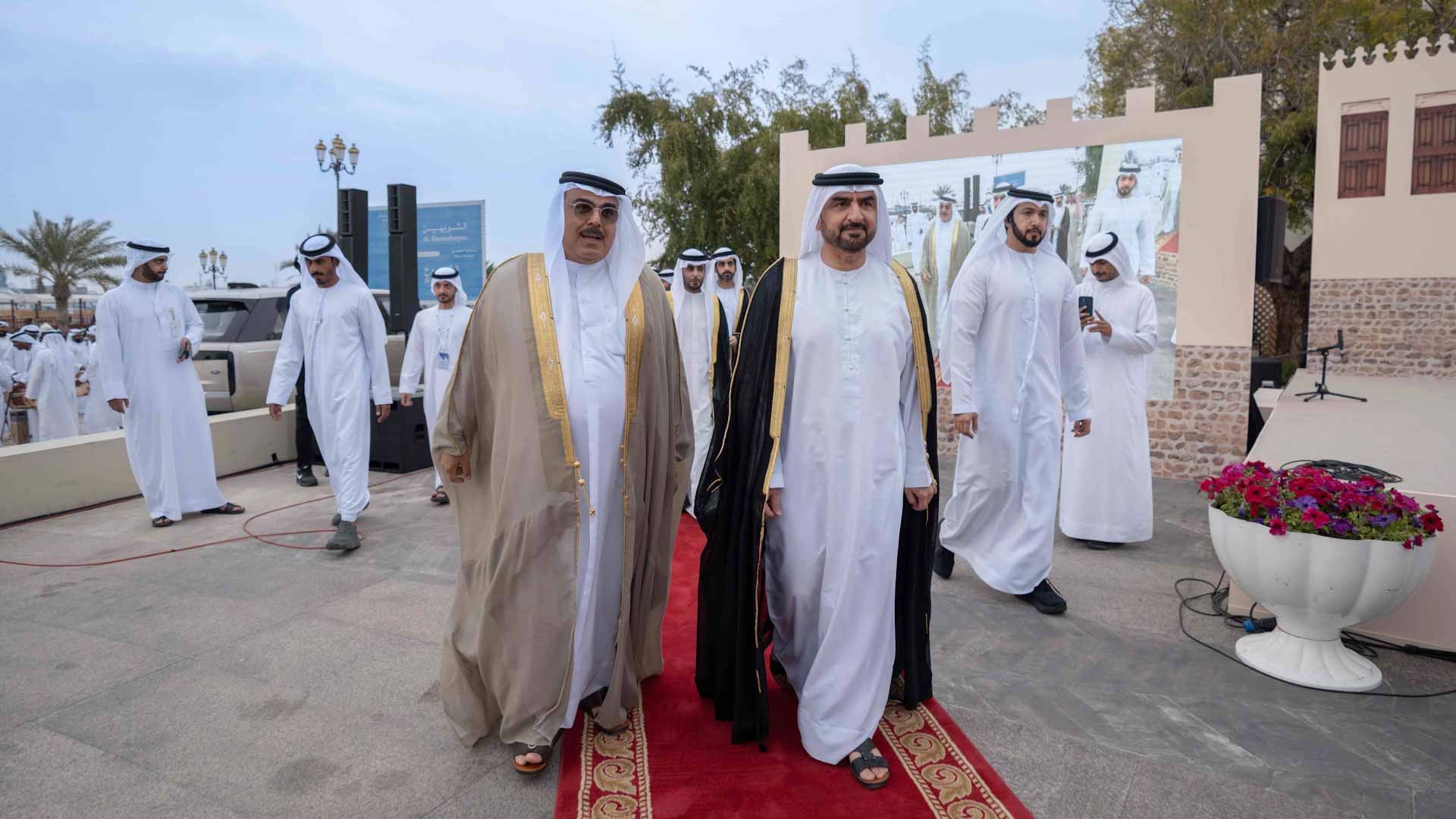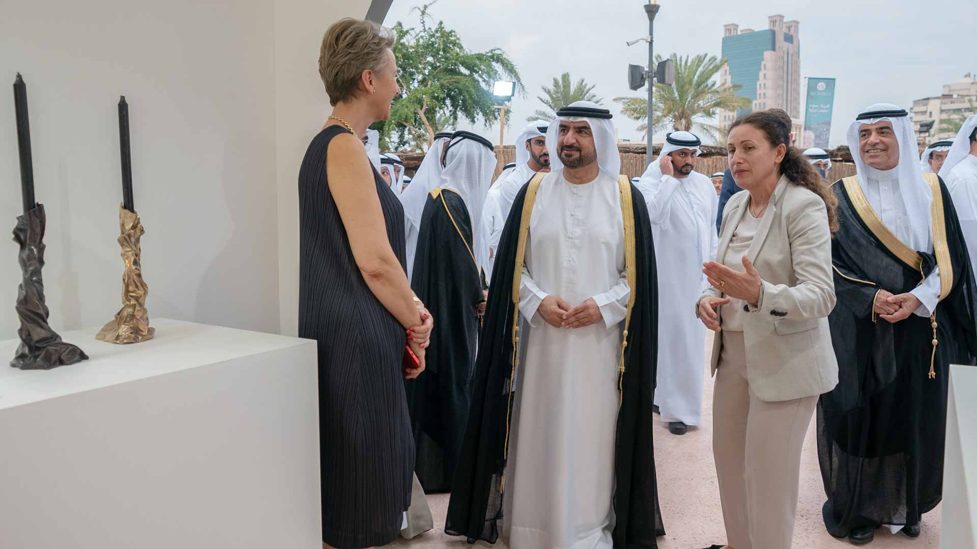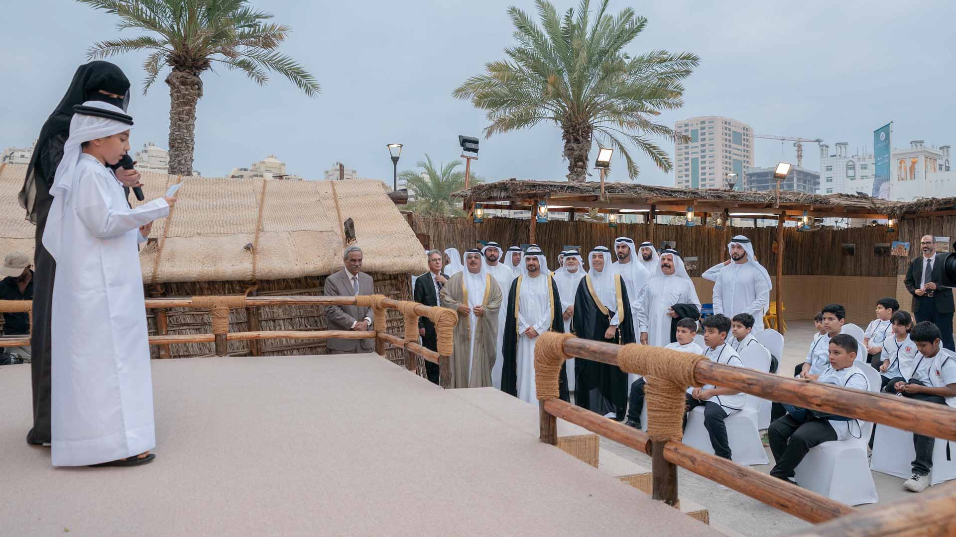واستقبل سموه لدى وصوله بعزف فن العيالة الإماراتي، وكان في استقباله كل من الشيخ خالد بن عبد الله القاسمي رئيس هيئة الشارقة للموانئ والجمارك والمناطق الحرة، والشيخ سالم بن عبد الرحمن القاسمي رئيس مكتب سمو الحاكم، والشيخ فاهم بن سلطان القاسمي رئيس دائرة العلاقات الحكومية، والشيخ ماجد بن سلطان القاسمي رئيس دائرة شؤون الضواحي والقرى، وعدد من كبار المسؤولين رؤساء ومدراء الجهات الحكومية الاتحادية والمحلية ومسؤولي المنظمات الدولية والإقليمية المعنية بالتراث والثقافة، والضيوف الرسميين المشاركين في الأيام ومجموعة من الخبراء والمهتمين بالشأن التراثي.