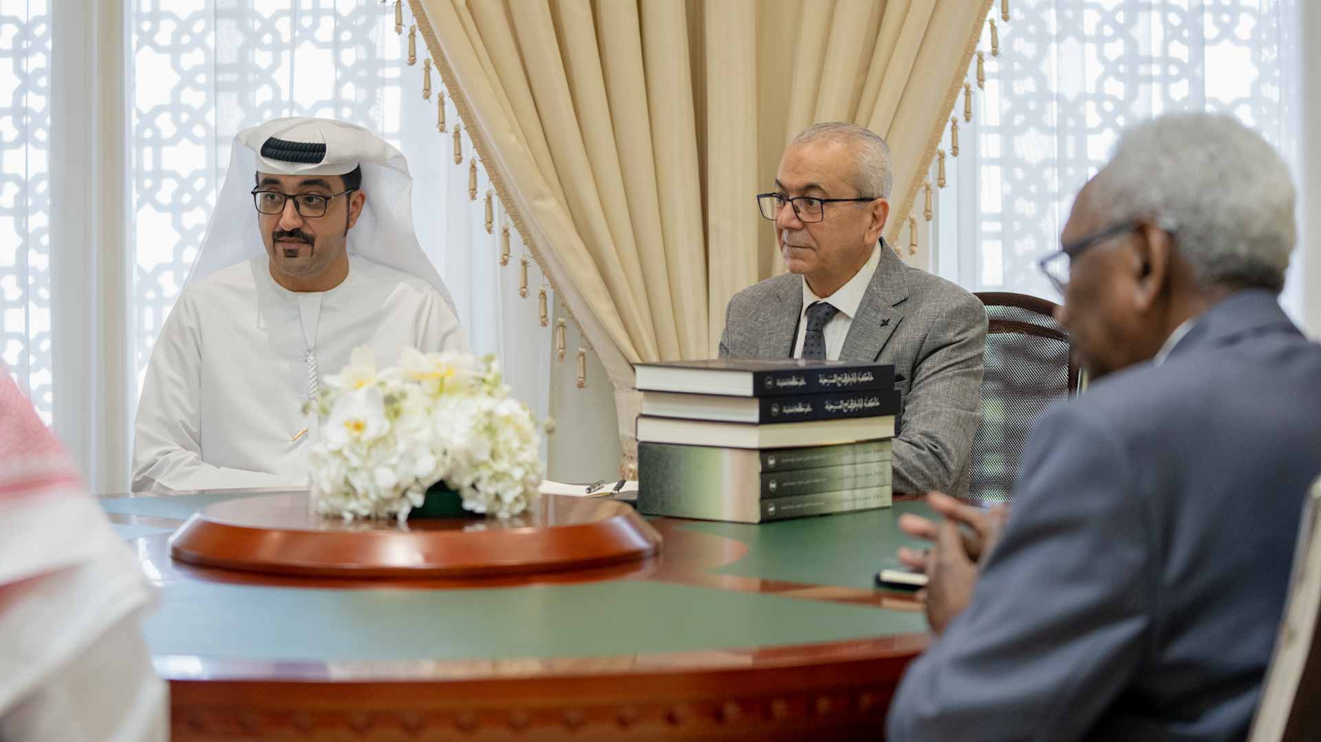 وناقش صاحب السمو حاكم الشارقة مع وفد الهيئة مقترحات وخطط تطوير العمل المسرحي في الوطن العربي، من خلال دعم التأليف المسرحي، وتحفيز الكتاب، والارتقاء بعناصر العمل المسرحي، من إخراج وإعداد وتصميم وإضاءة وأداء مسرحي.