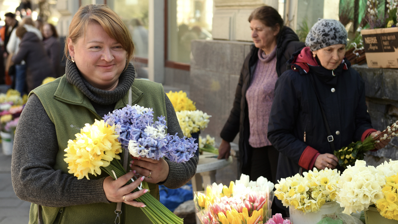 رغم الحزن هناك فسحة فرح، إذ تألقت شوارع كييف بالباقات الملونة، وازدحمت محلات الورود بالزبائن الذين يرغبون بإهداء باقة منسقة للجنس الناعم في هذا اليوم احتفاء باليوم العالمي للمرأة رغم الحرب الروسية المستمرة.